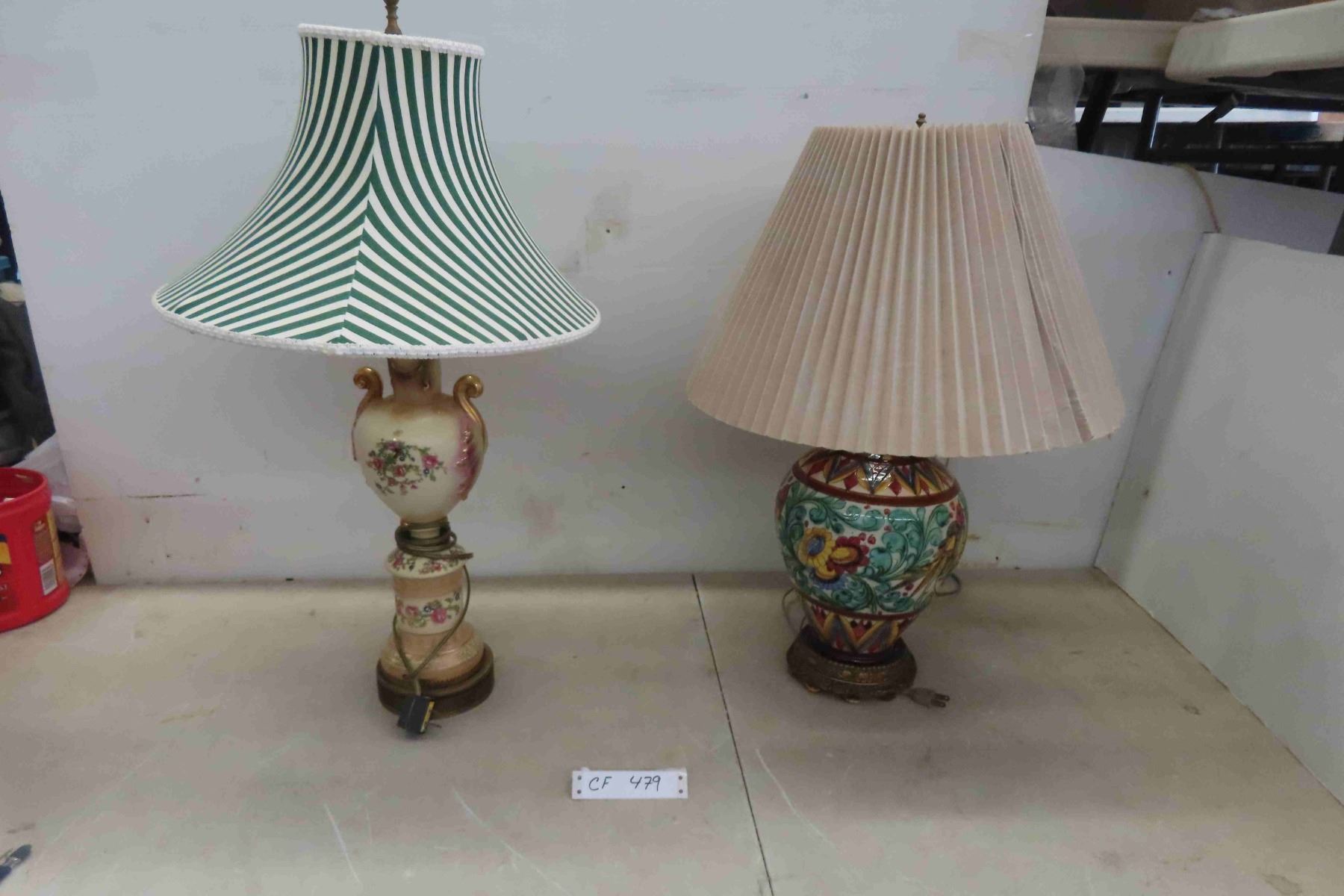 2 Table Lamps with One Decorative Ceramic Base + Shades 28" High