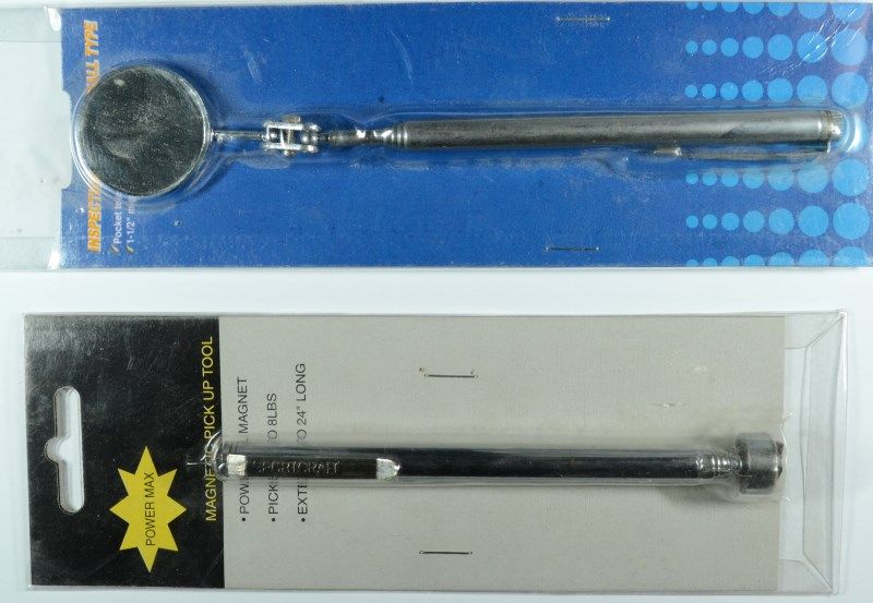 2 - Telescoping INstruments. 1 - mirror and 1- magnet both w /clip pocket clips. Old dealer inventory. EST:$40-$50