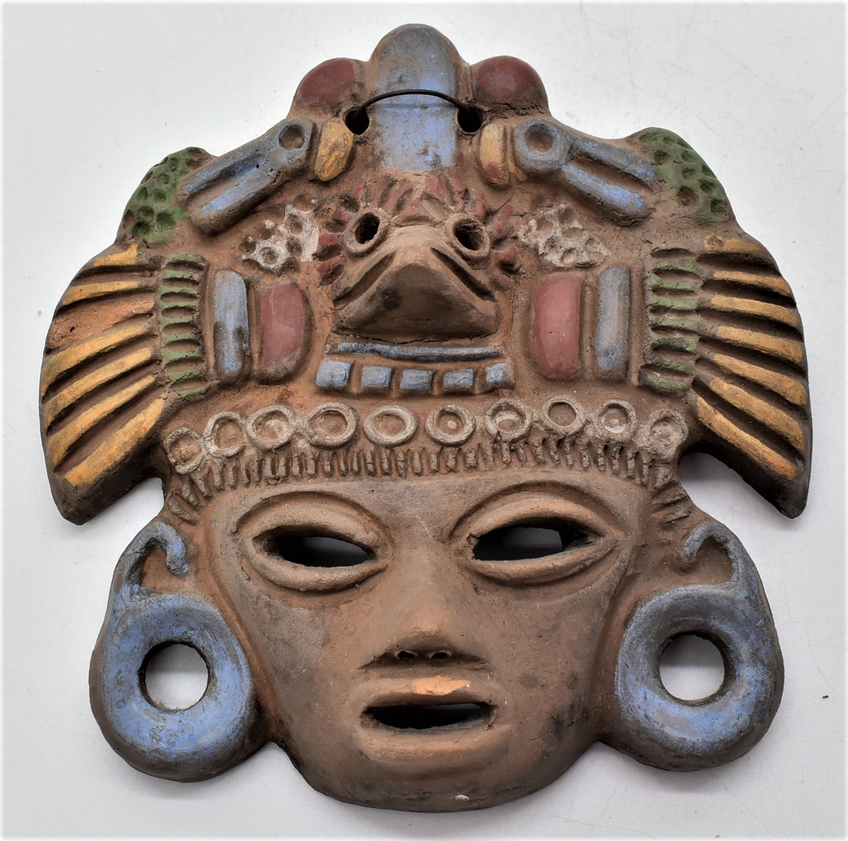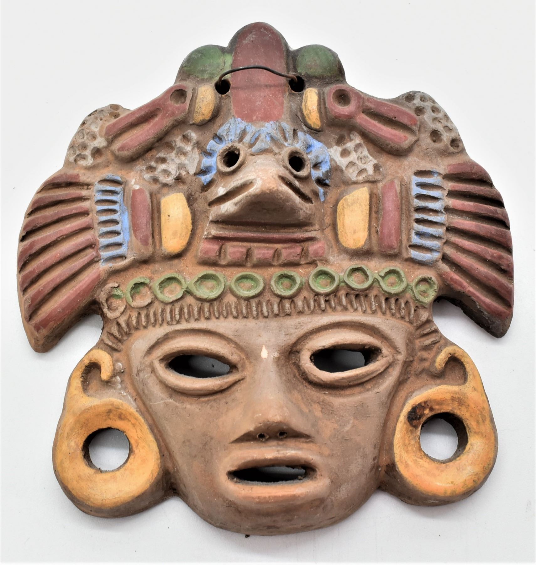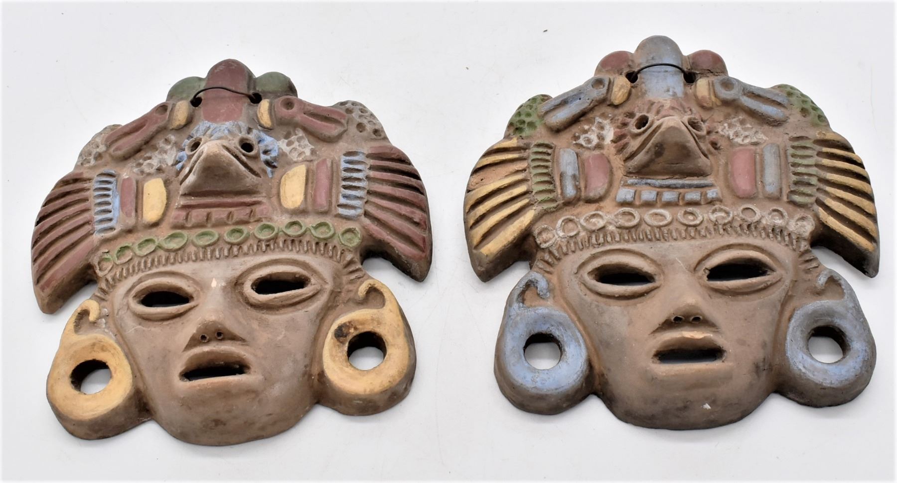 2 Terra Cotta Mayan Style Masks, measure 6'' x 5.25''