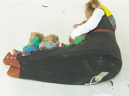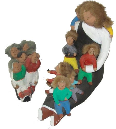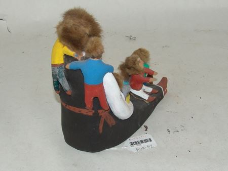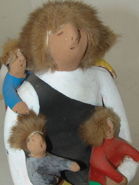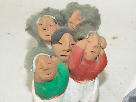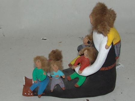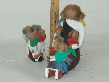 Ca. 1970s, Includes a larger storyteller with seven children by Art Vigil, the smaller one by his grandson, Manuel. Both good condition, some smudges, etc. on the matte paint, unsigned. Larger 8" x 8-1/2" x 4-1/2"
