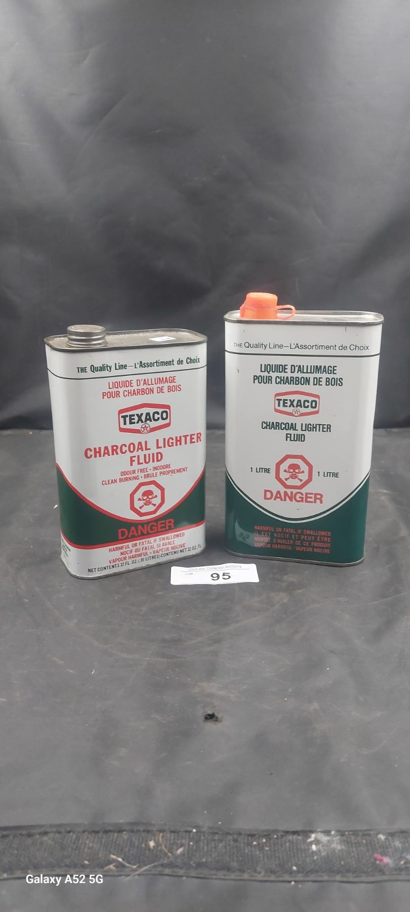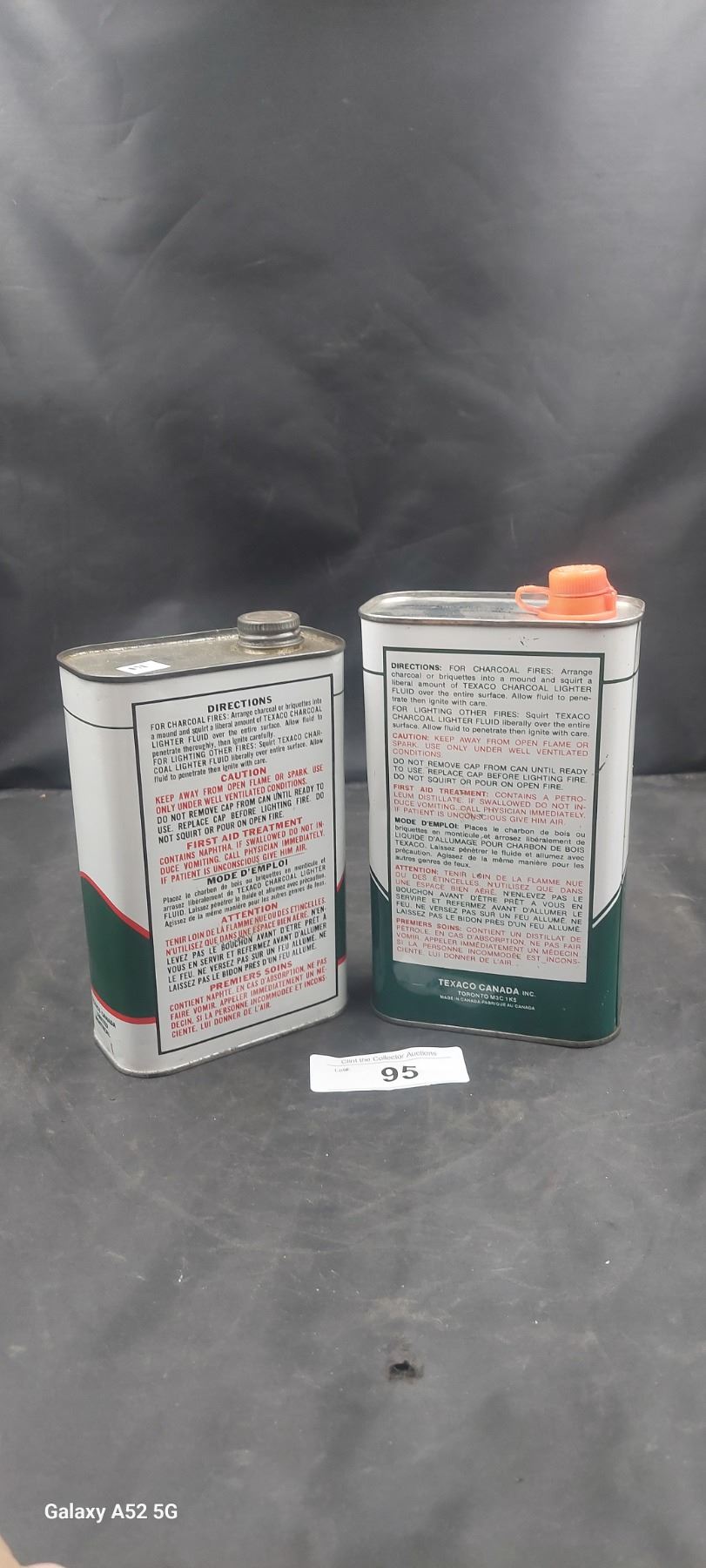 2 Texaco Charcoal lighter fluid tins 1 full 1 empty