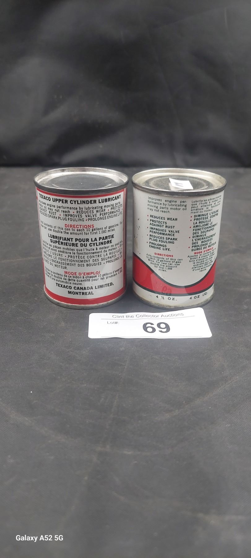 2 Texaco upper cylinder lubricant 4oz cans, 1 empty 1 full