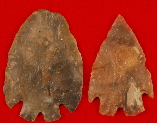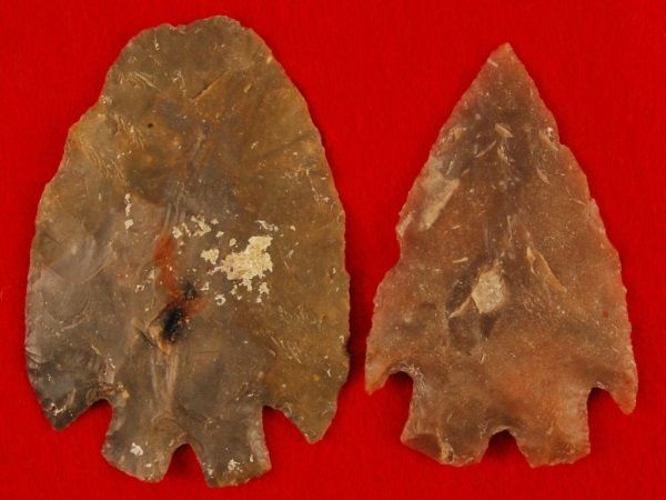Largest point measures 3 1/8" long. In Riker case. Case measures 6 1/4" x 5 1/4". Authentic