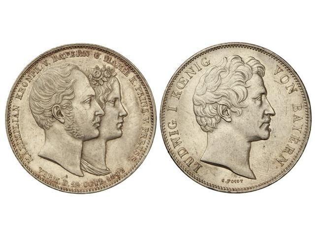 2 Thaler. - 1842. - BAVARIA. - AR. Boda Príncipe heredero. (Pequeños golpecitos). KM-431.1. EBC. - -