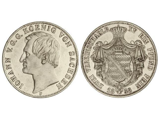 2 Thaler. 1858-F. JUAN I. SAJONIA. AR. (Pequeños golpecitos). C-277. EBC.