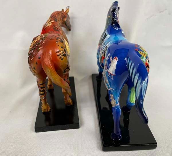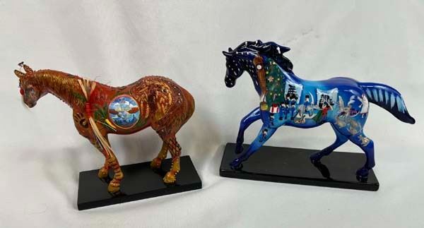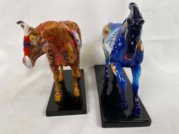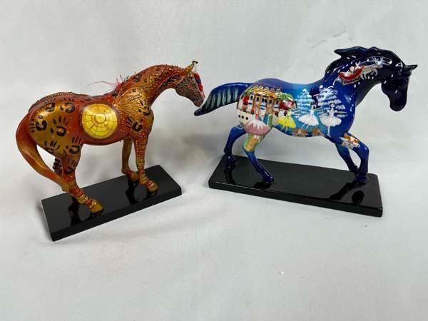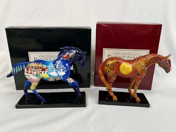 2 The Trail of Painted Ponies Figures, in original boxes, includes 2004 Nutcracker Pony (Retired 12/09) #12201 and 2005 Reunion of the Family of Man (01/08) #12208, measure 7'' x 6.5'' x 2.5''