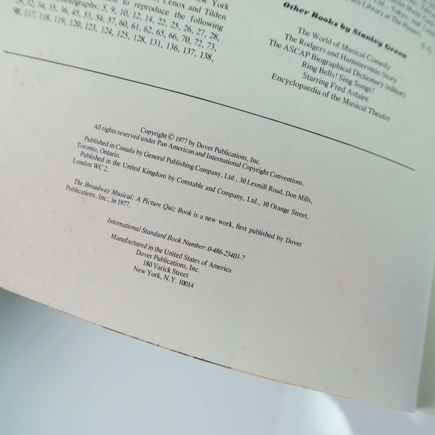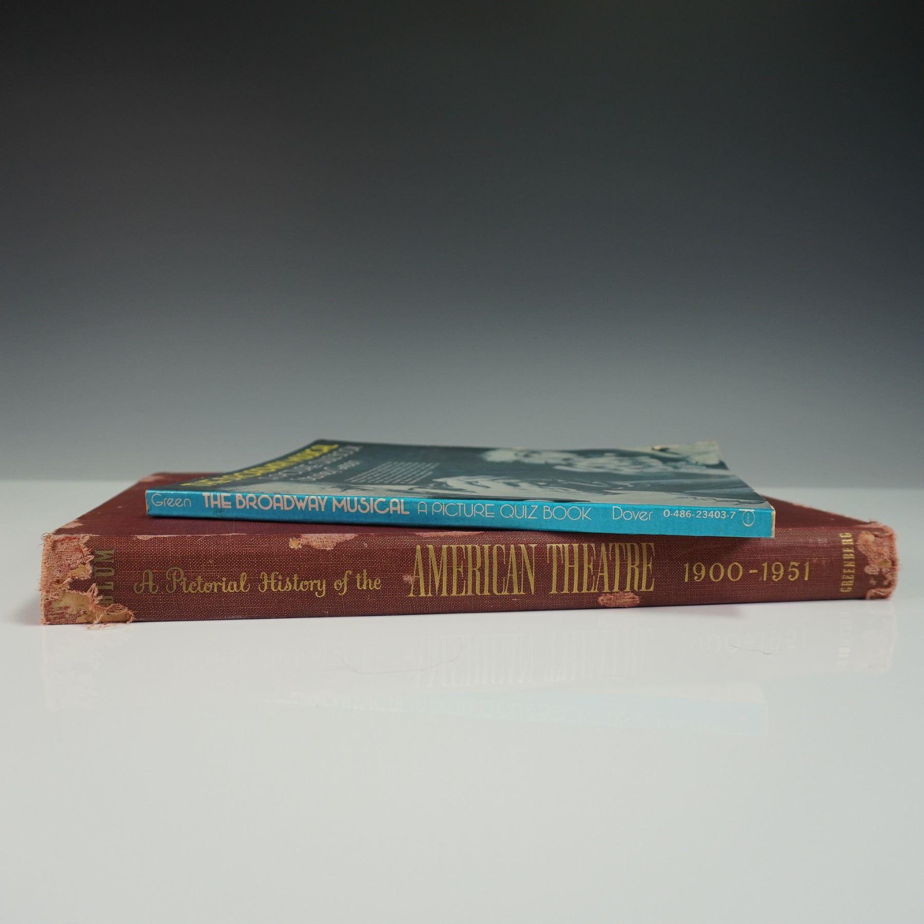 Titles include: A Pictorial History of the American Theatre by Daniel Blum, published by Greenberg (1951); and The Broadway Musical: A Picture Quiz Book by Stanley Green, published by Dover Publications (1977). These books provide a rich visual and historical overview of American theatre and Broadway musicals. A fascinating collection for theatre enthusiasts and collectors. The dimensions of the collection measures: 12"H x 1.5"W.