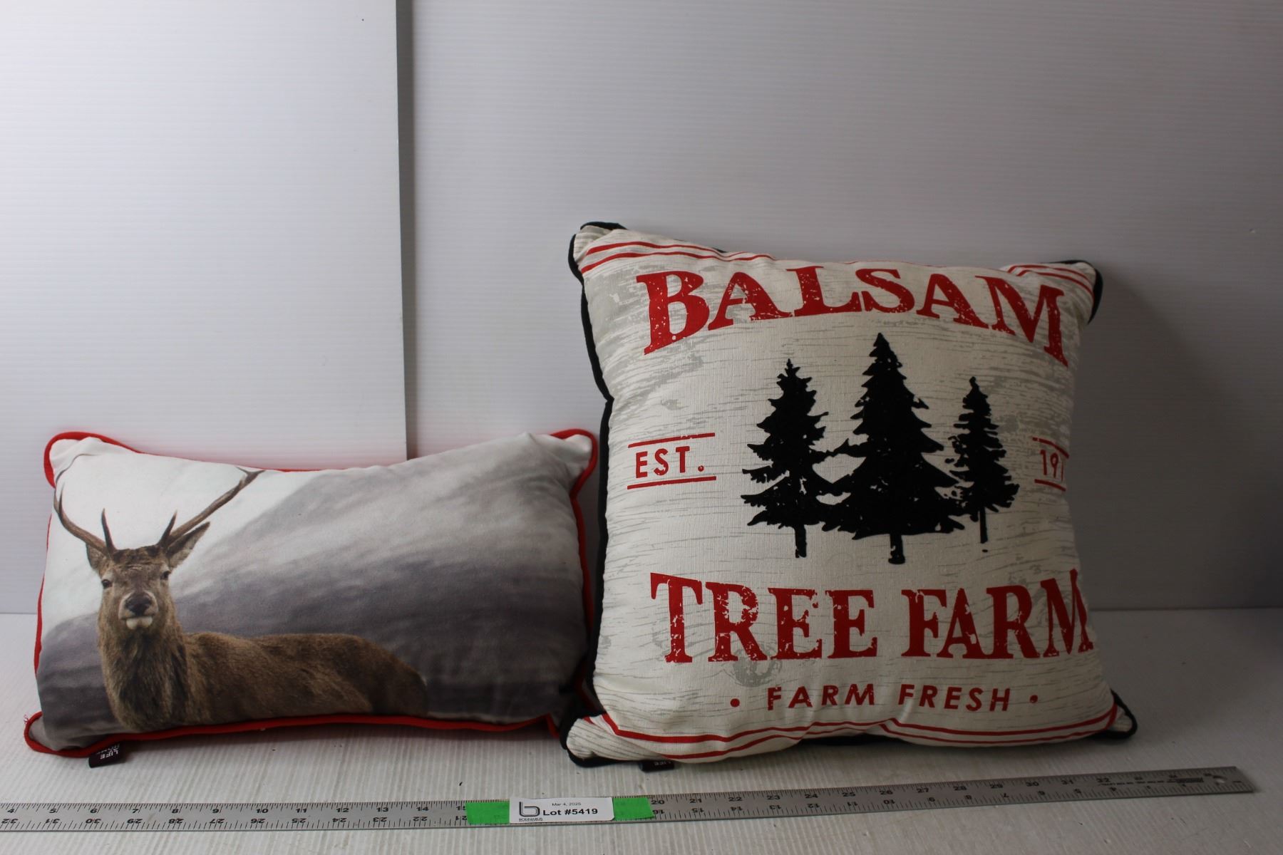 (2) Throw Pillows- Deer Photo & Balsam Tree Farm