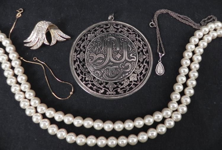 2 Tiered Jewelry Box w/ Necklaces, Pendants, Gold
