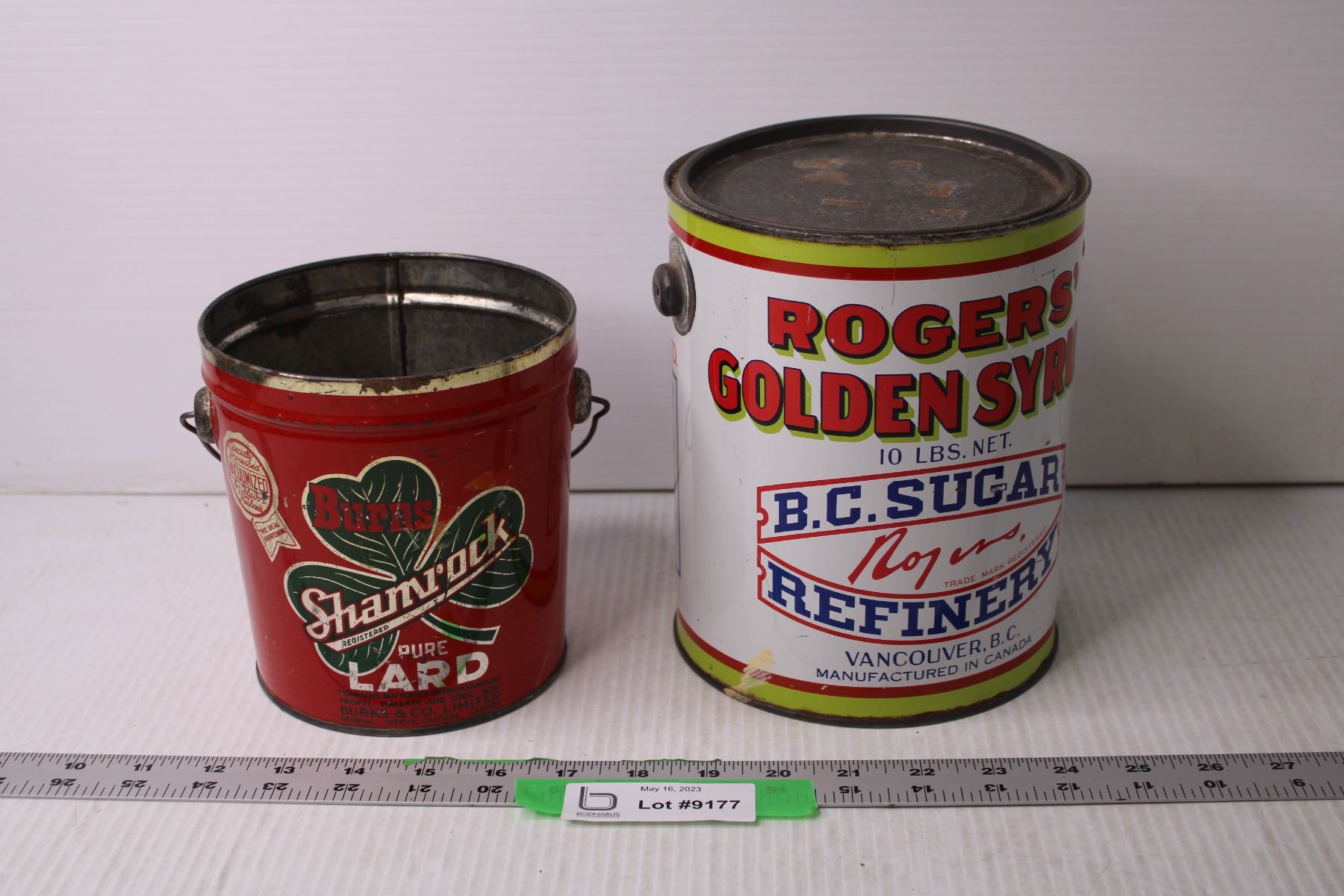 (2) Tin Cans - Rogers Golden Syrup, Shamrock Pure Lard