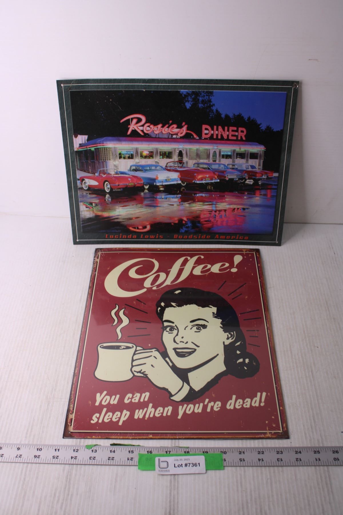 (2) Tin Signs - 12 1/2" x 16" - Coffee and Diner Scene
