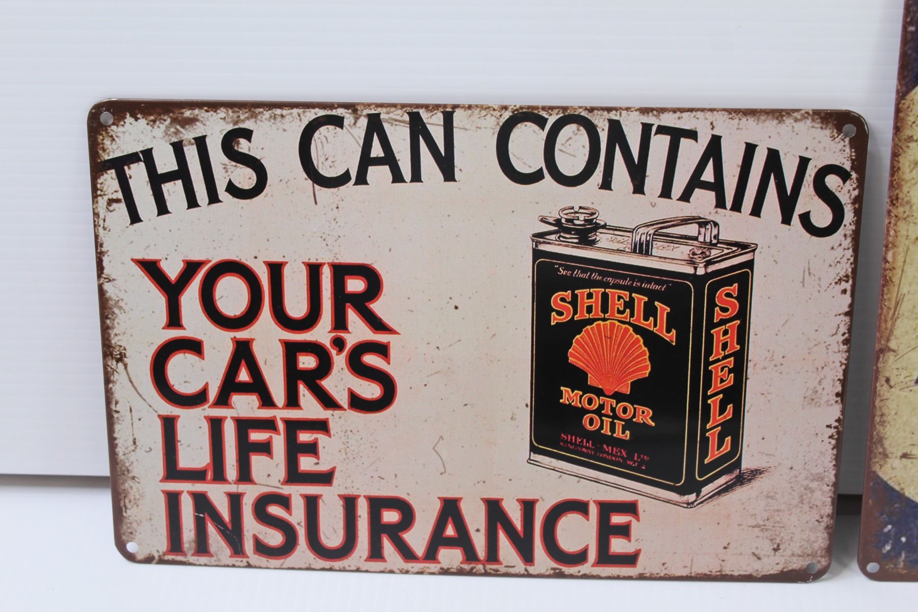 (2) Tin Signs: Chevrolet, Shell Oil (12" x 8")