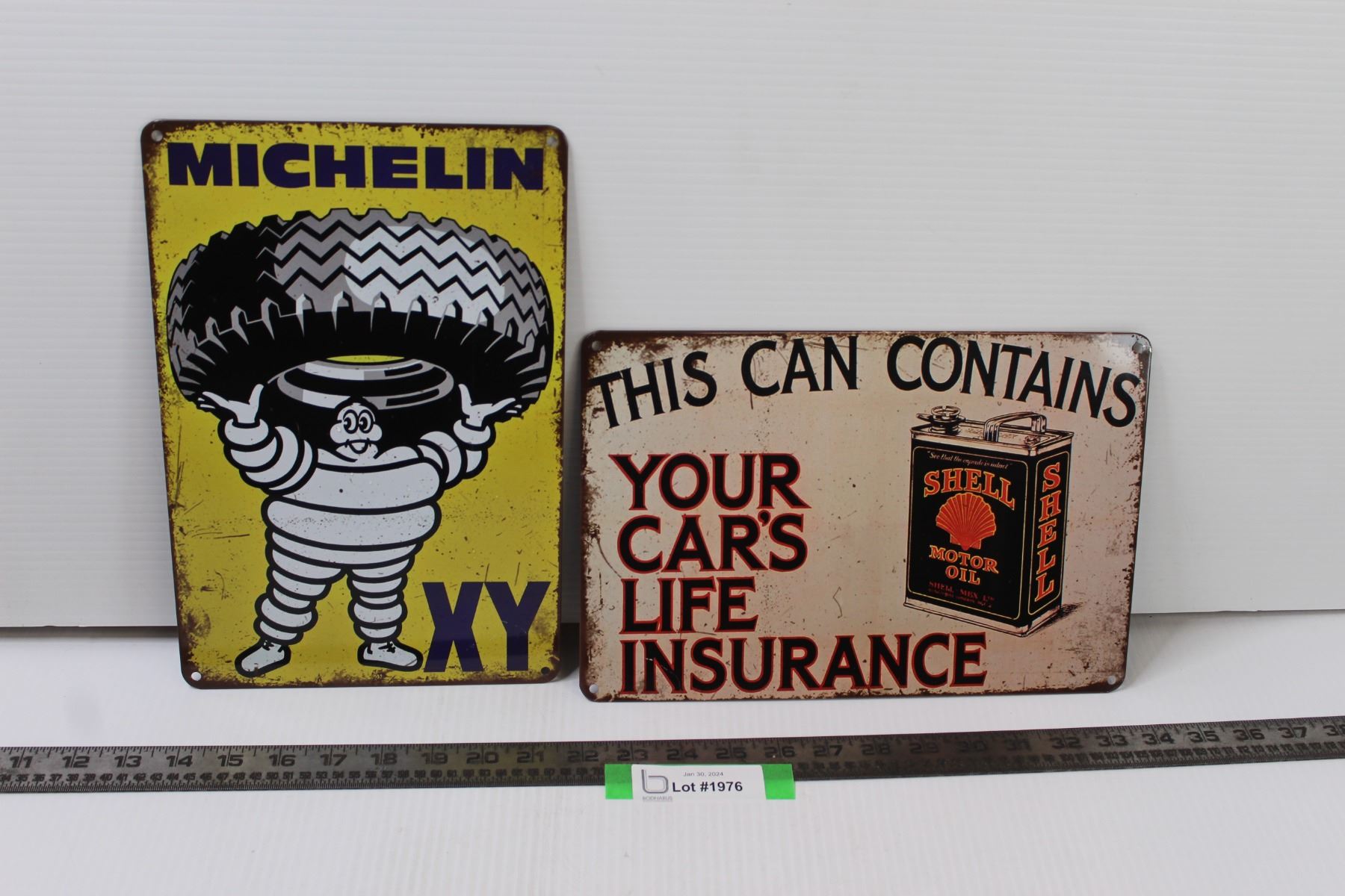 (2) Tin Signs: Shell, Michelin - 12"x8"