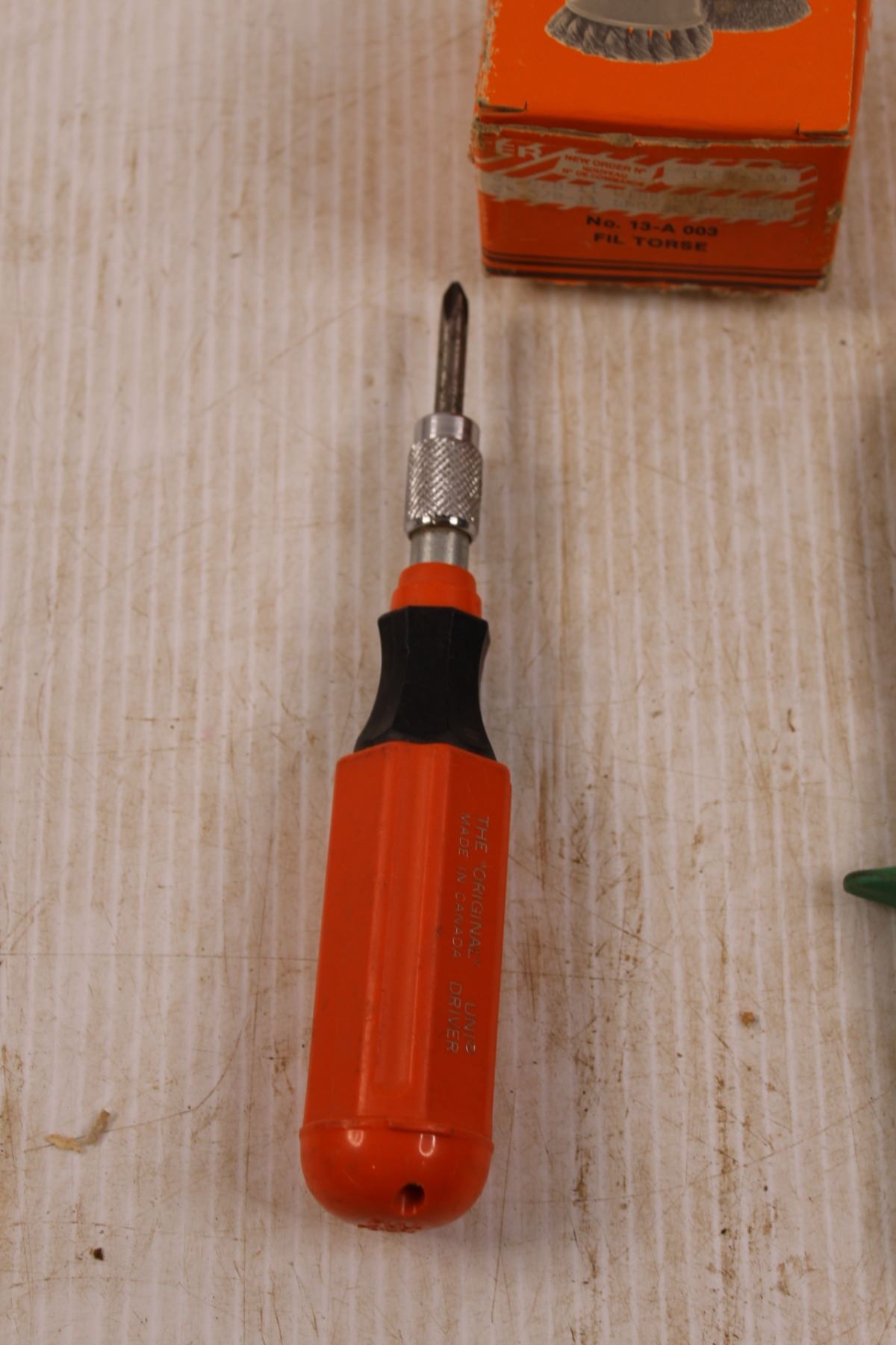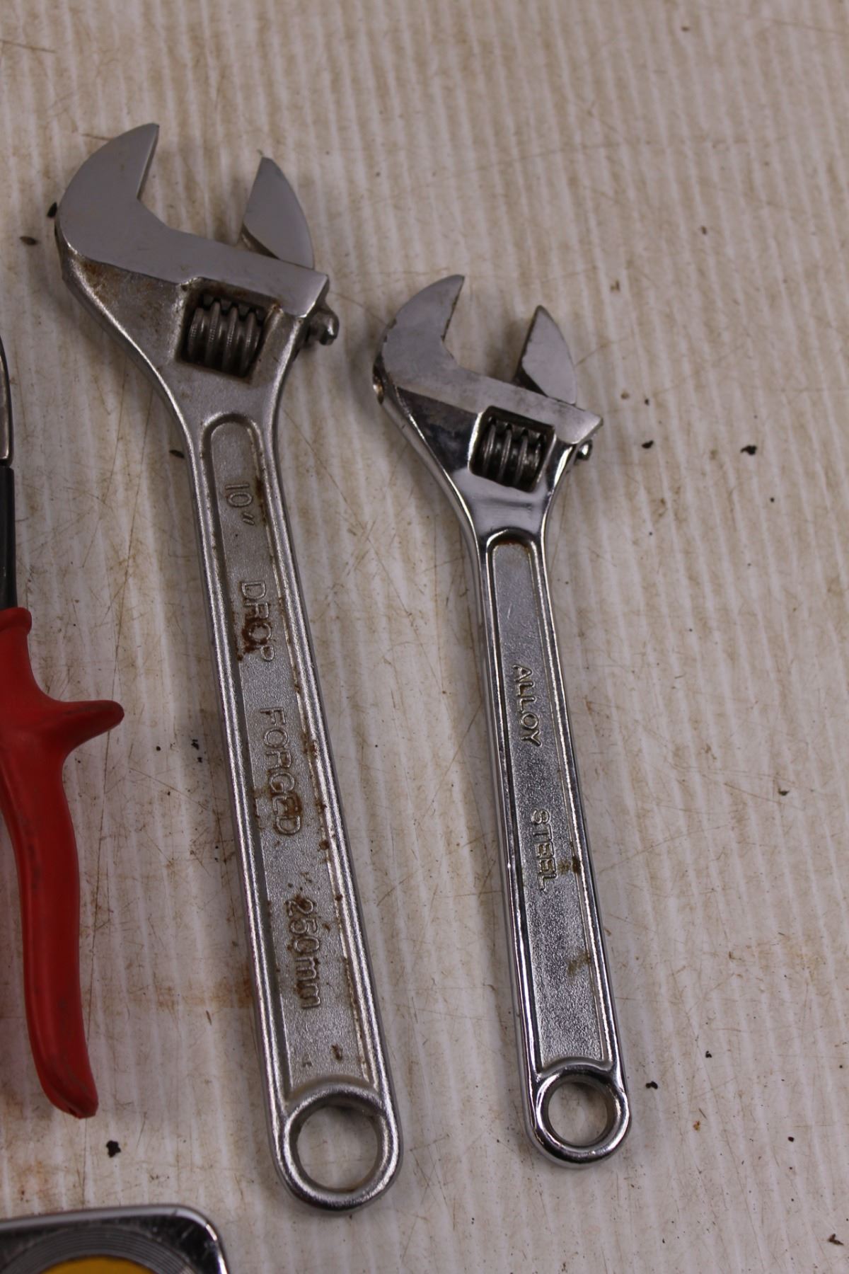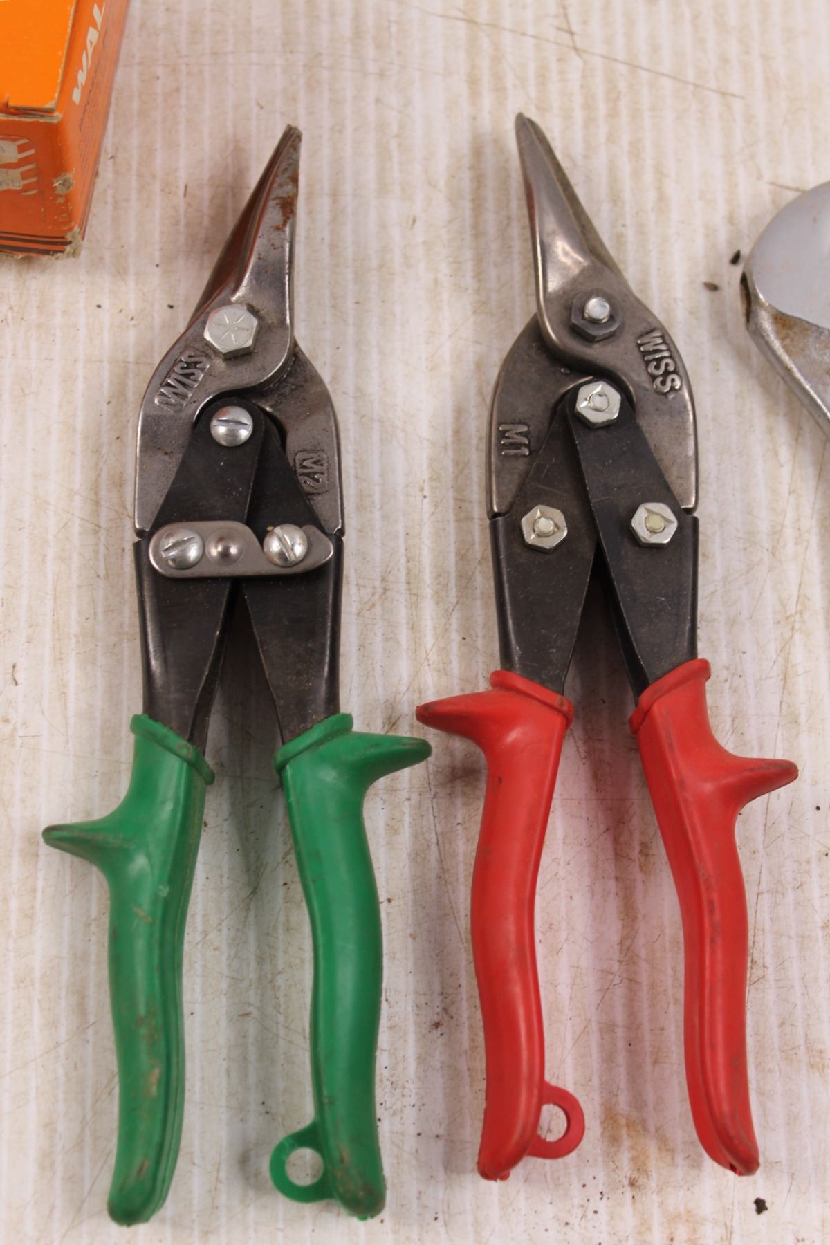 (2) Tin Snips (WISS M1 & M2), (2) Adjustable Wrenches, (2) Lufkin Tape Measures (12' & 13') Multi Screwdriver & Walter Wire Cup Brush