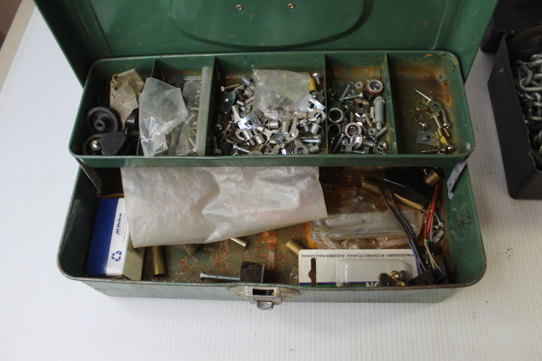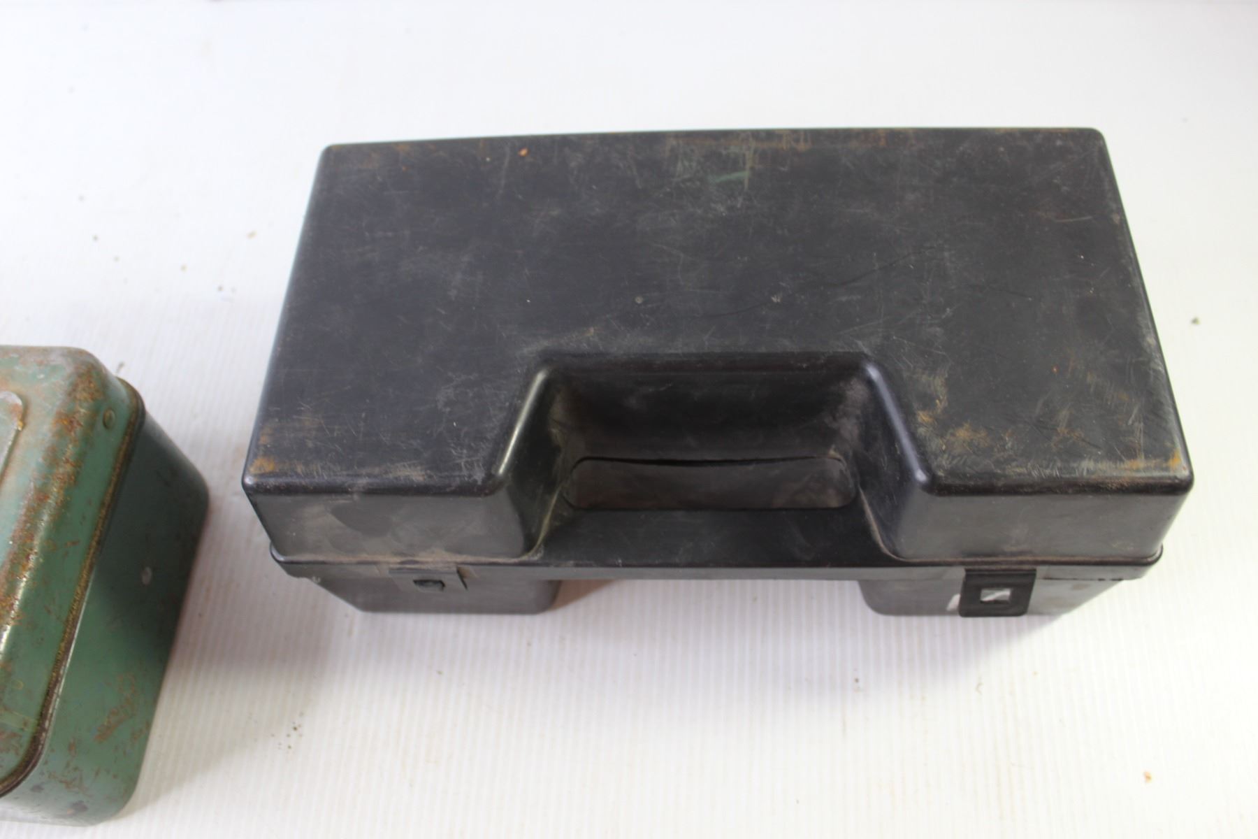 (2) Tool Boxes With Contents (Black Plastic 13" x 7" x 5", Green Metal 13.5" x 7" x 5" - As is)
