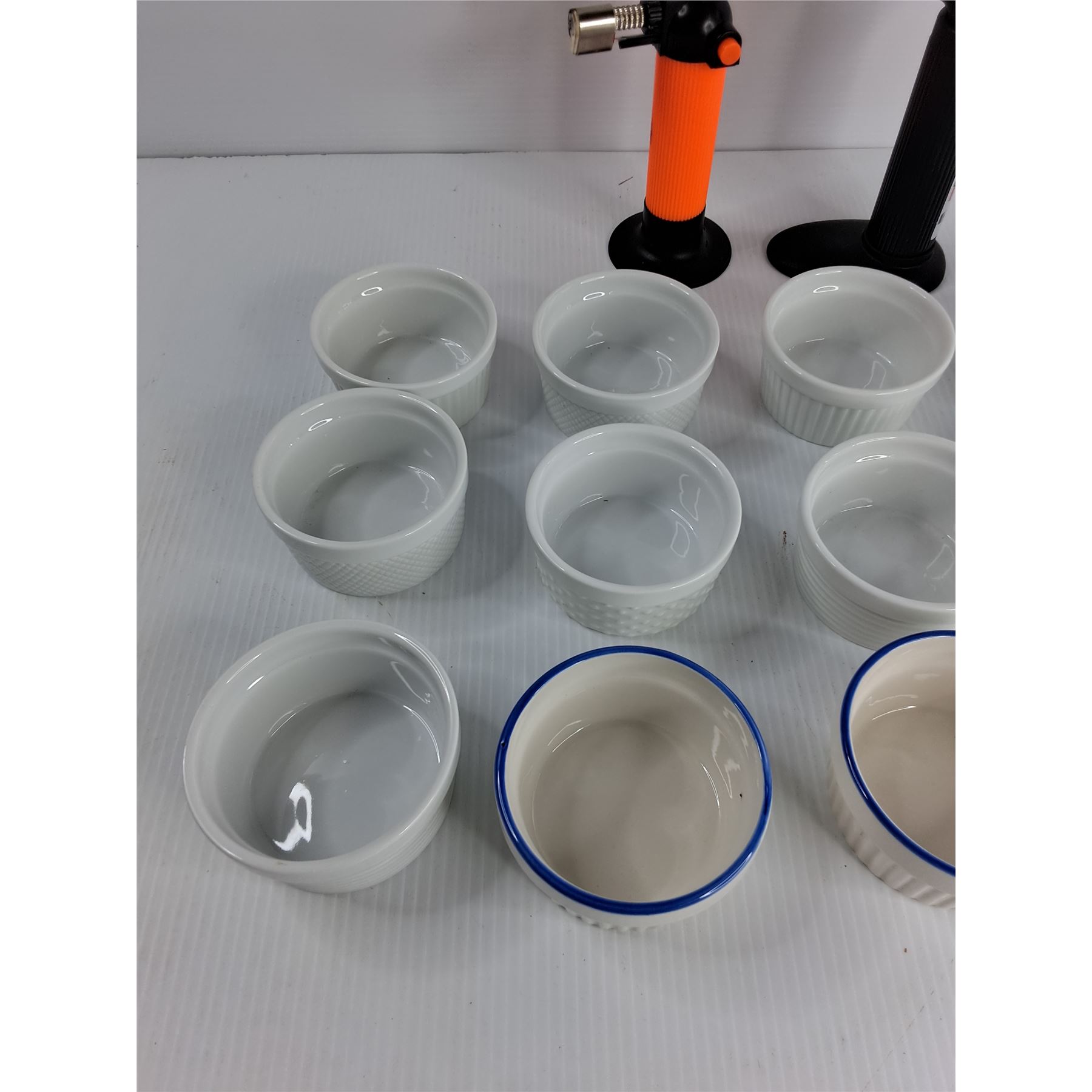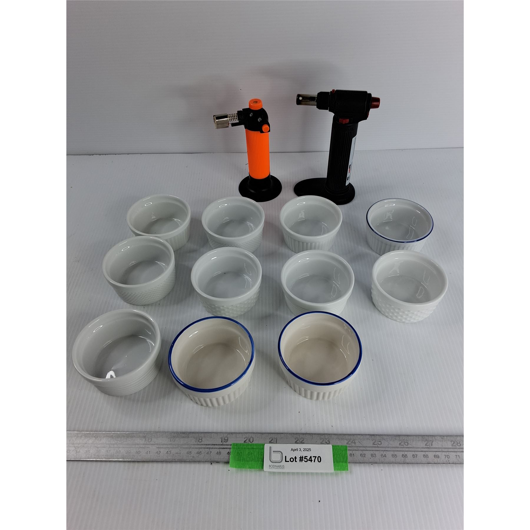(2) Torches- Both As is, (11) Small Sauce Bowls- Will Not ship
