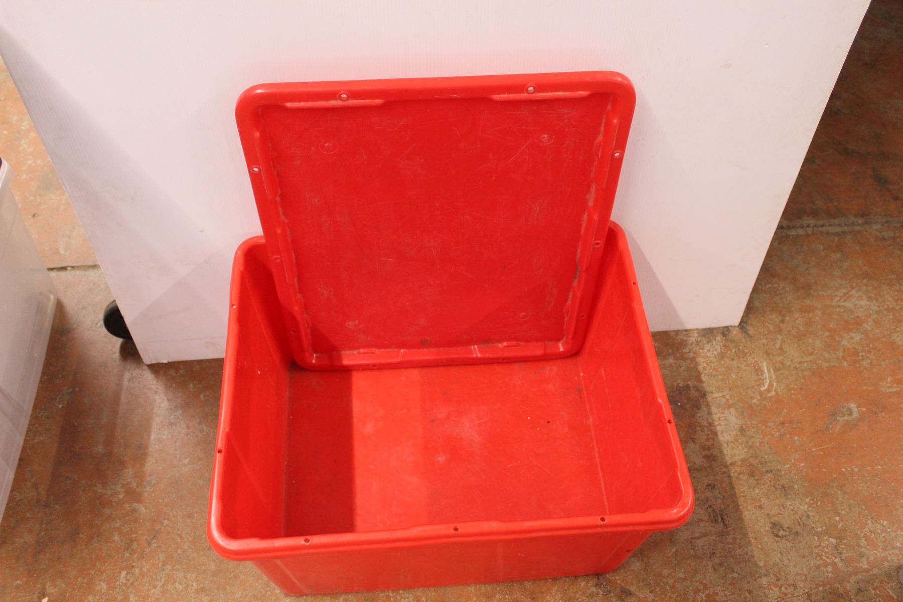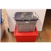 *(2) Totes w/Lids - Various Sizes (crack in one lid)