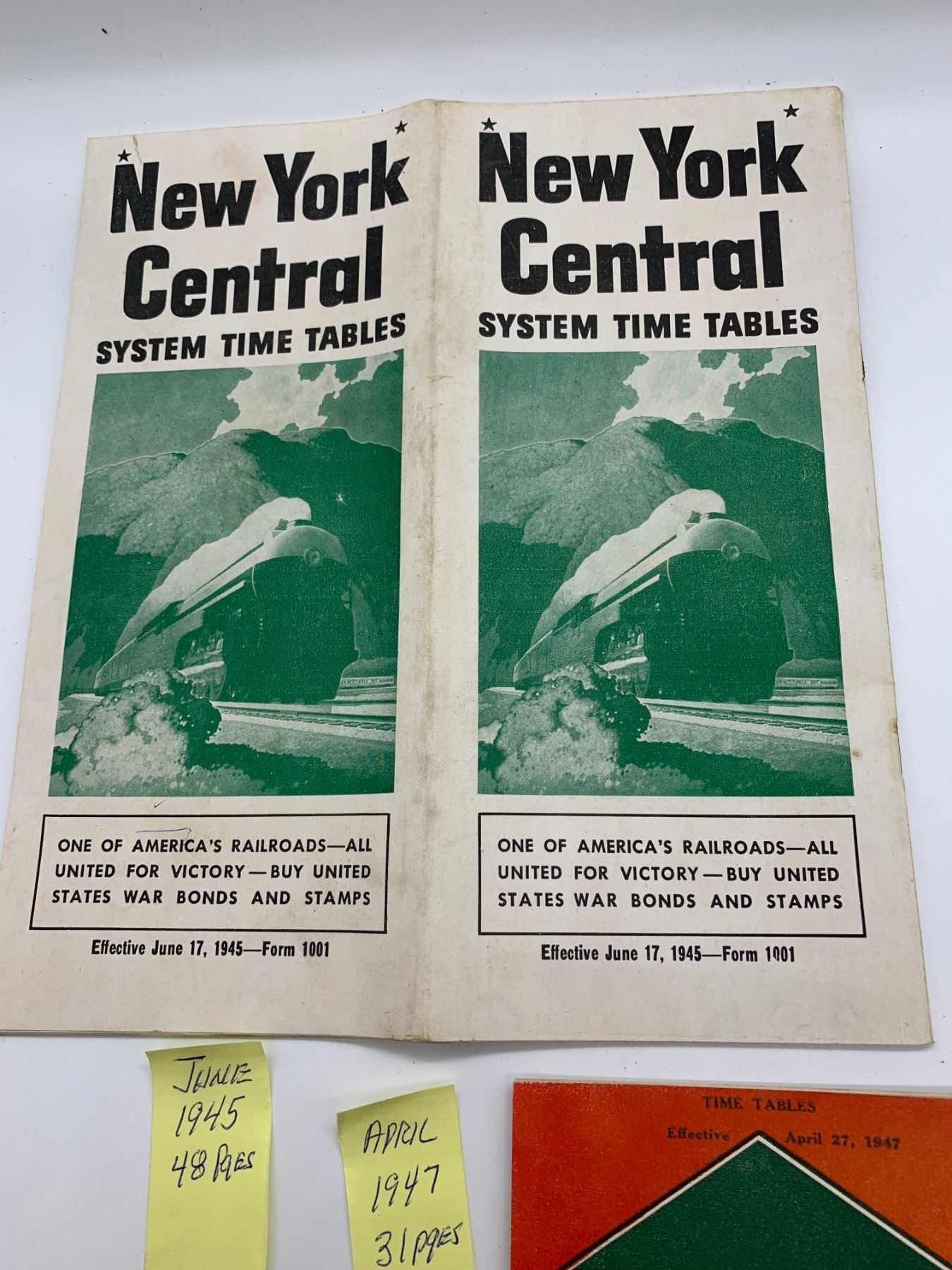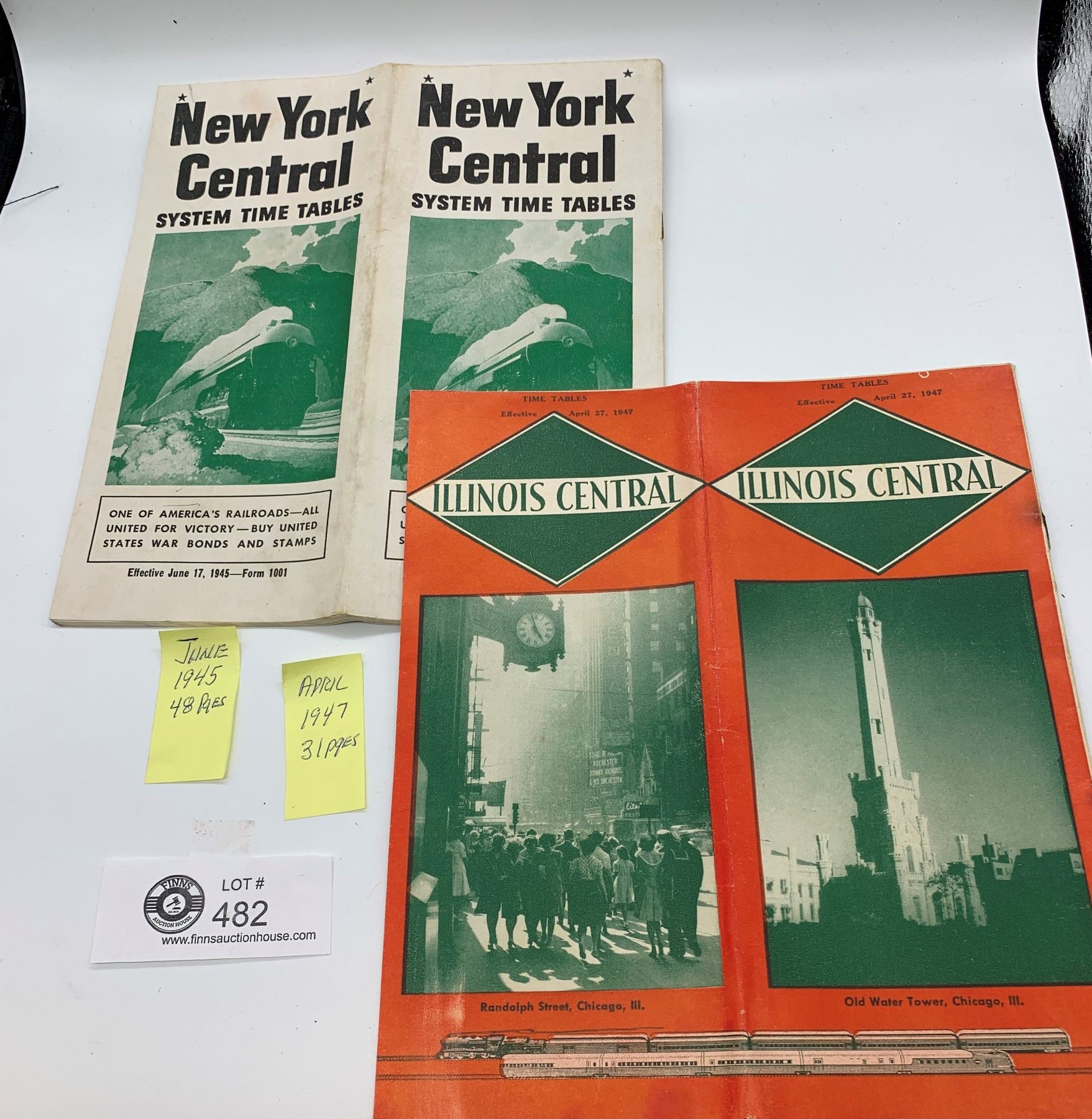 2 Train Railway Timetables New York Central System Timetables and Illinois Central Both in Very Good Shape
