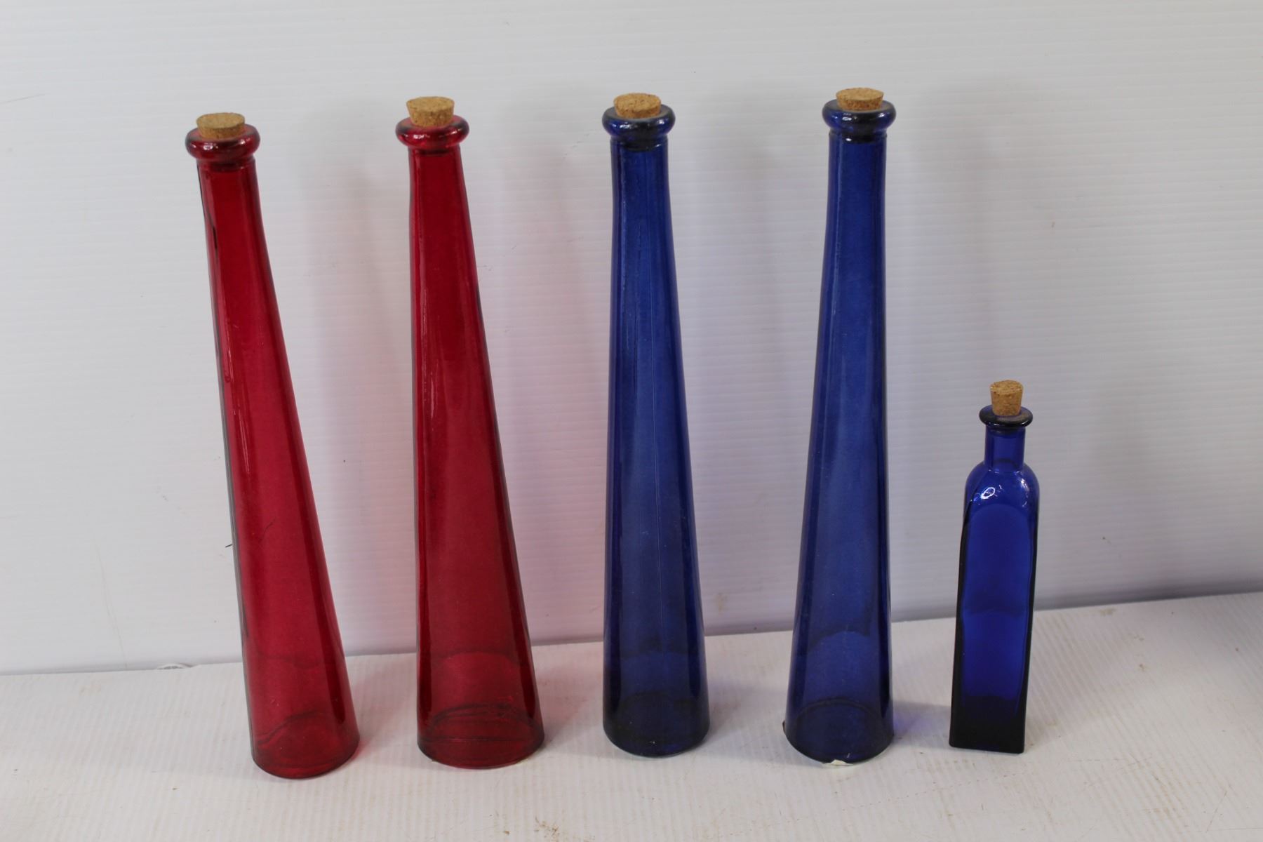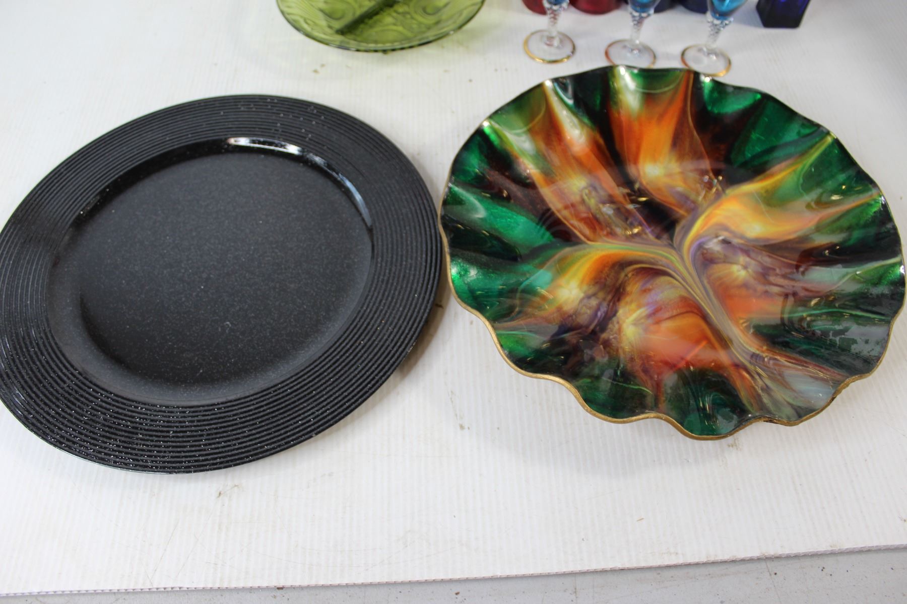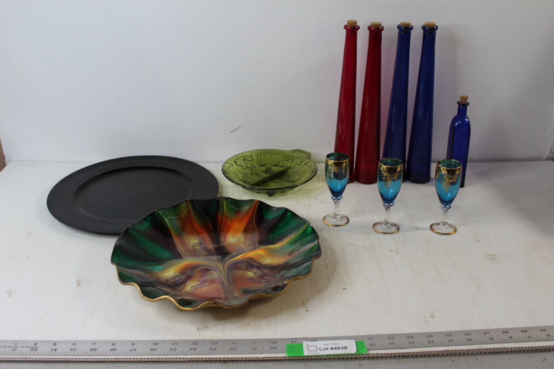 (2) Trays, (3) Coloured Glasses, (5) Coloured Glass Bottles, Coloured Glass Tray