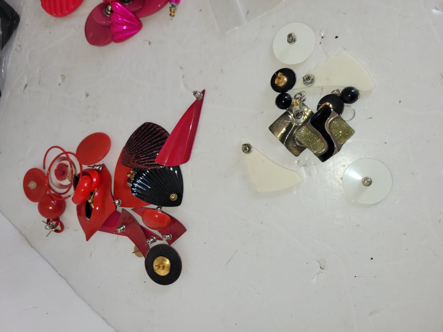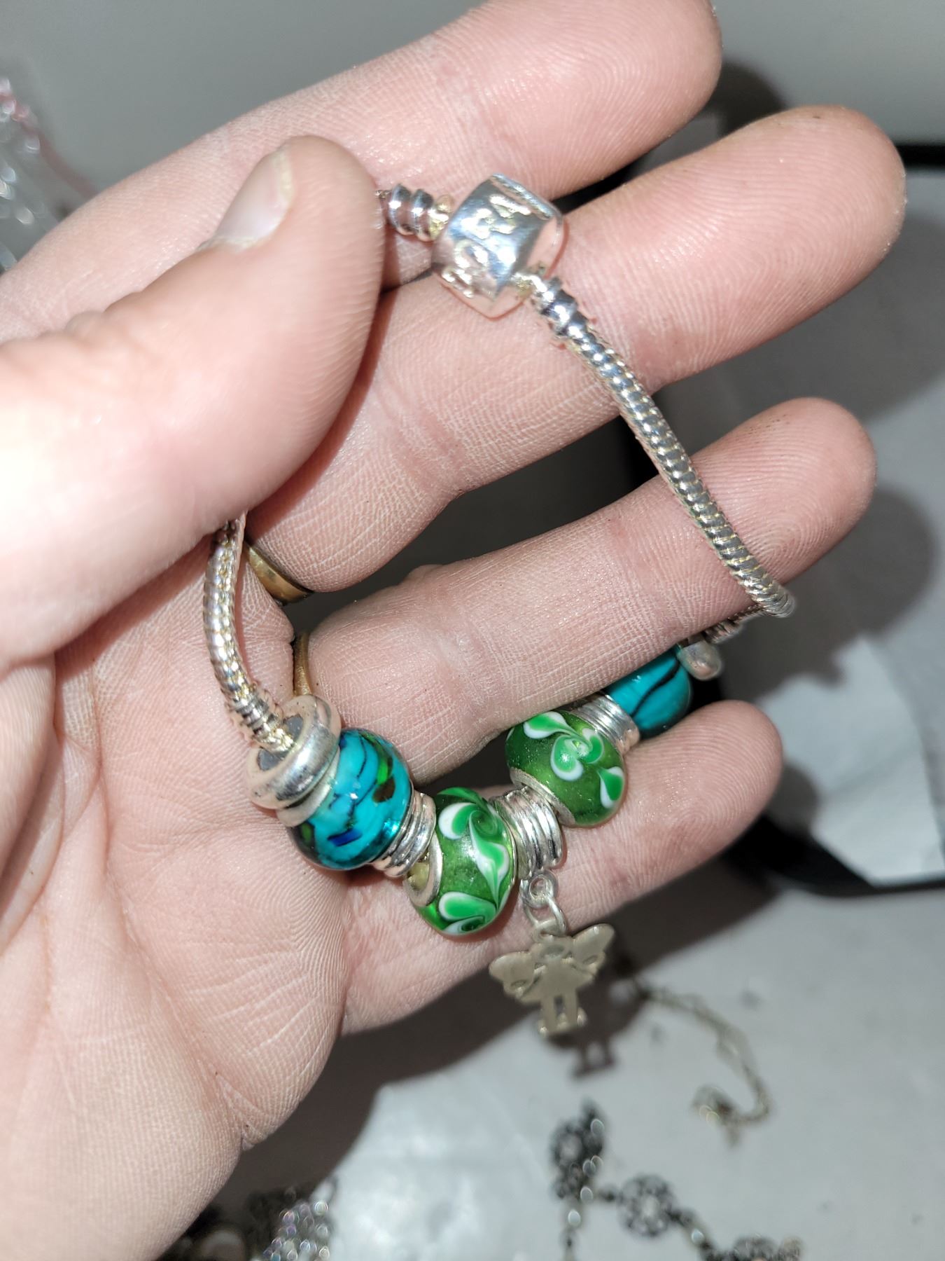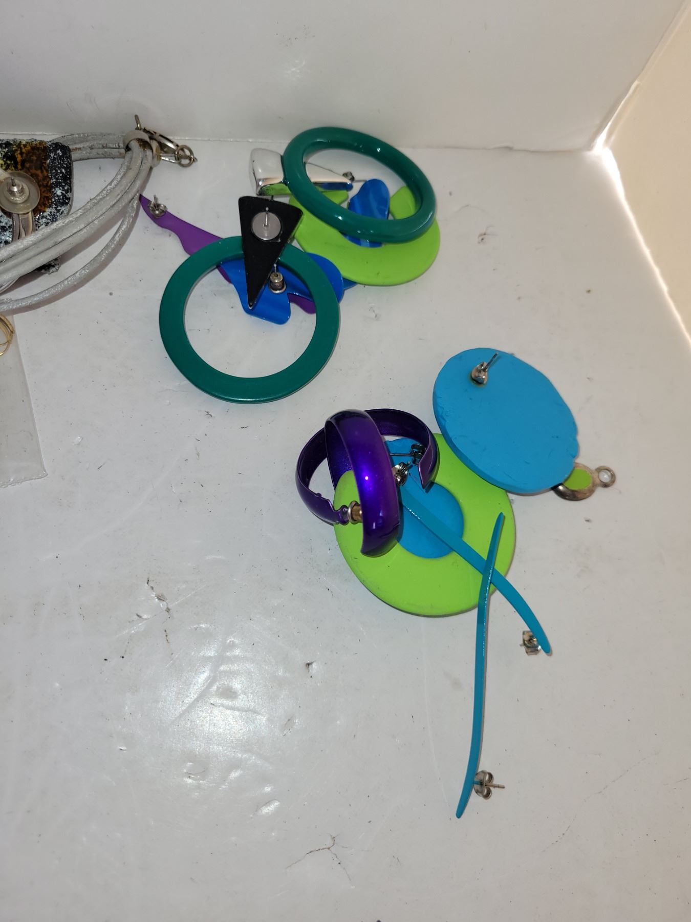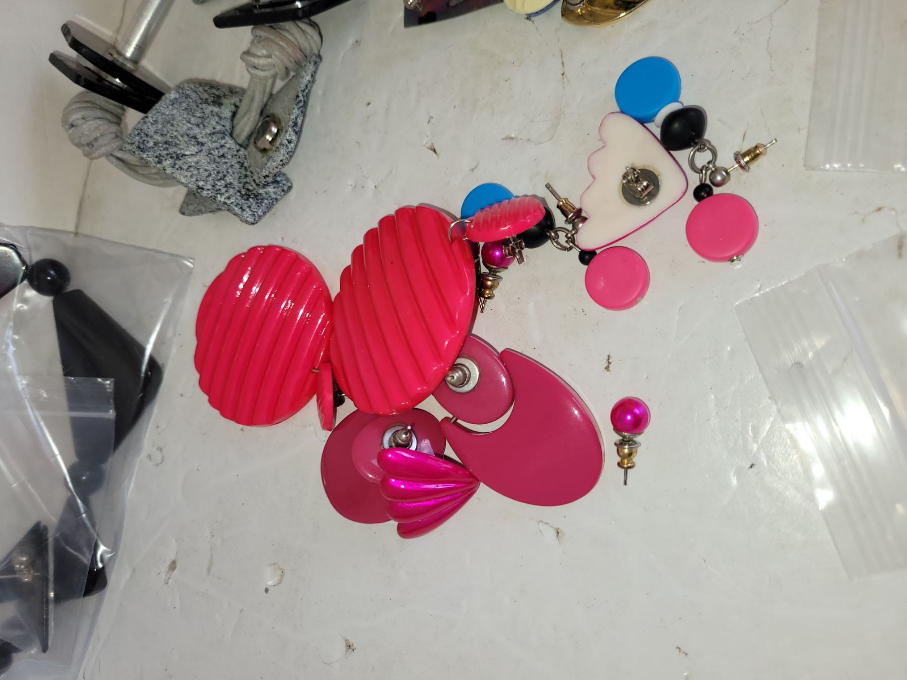 2 trays of costuem jewellery, somes 80s and beyond. Silver colour wicker oval mirror, 20"w x 5.5"h, paint to your liking. 5 black plastic oval picture frames. 1 framed seaweek picture.