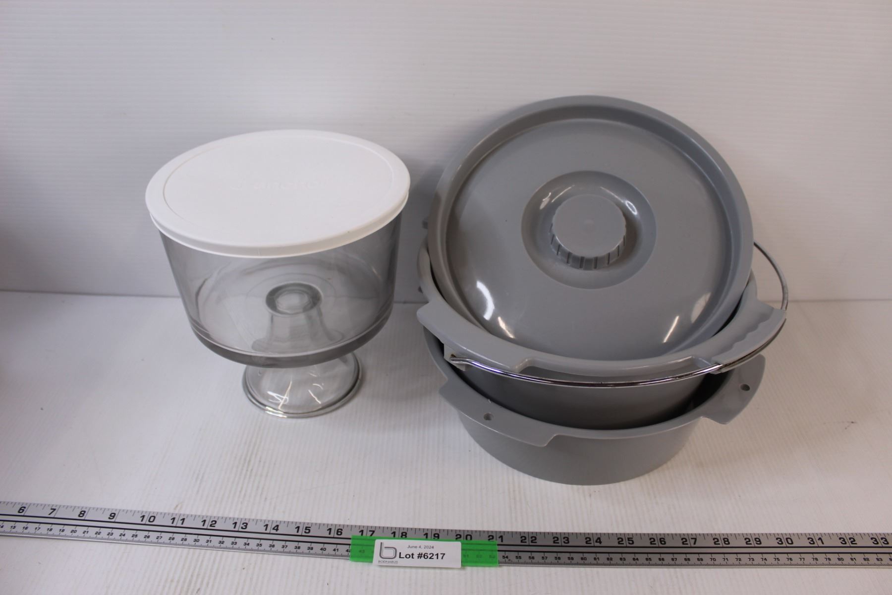 (2) Trifle Server & Lid, & Commode Pail with Lid