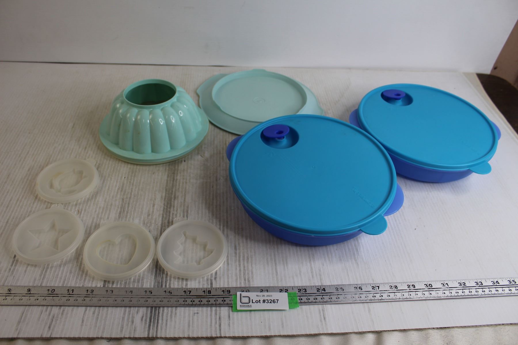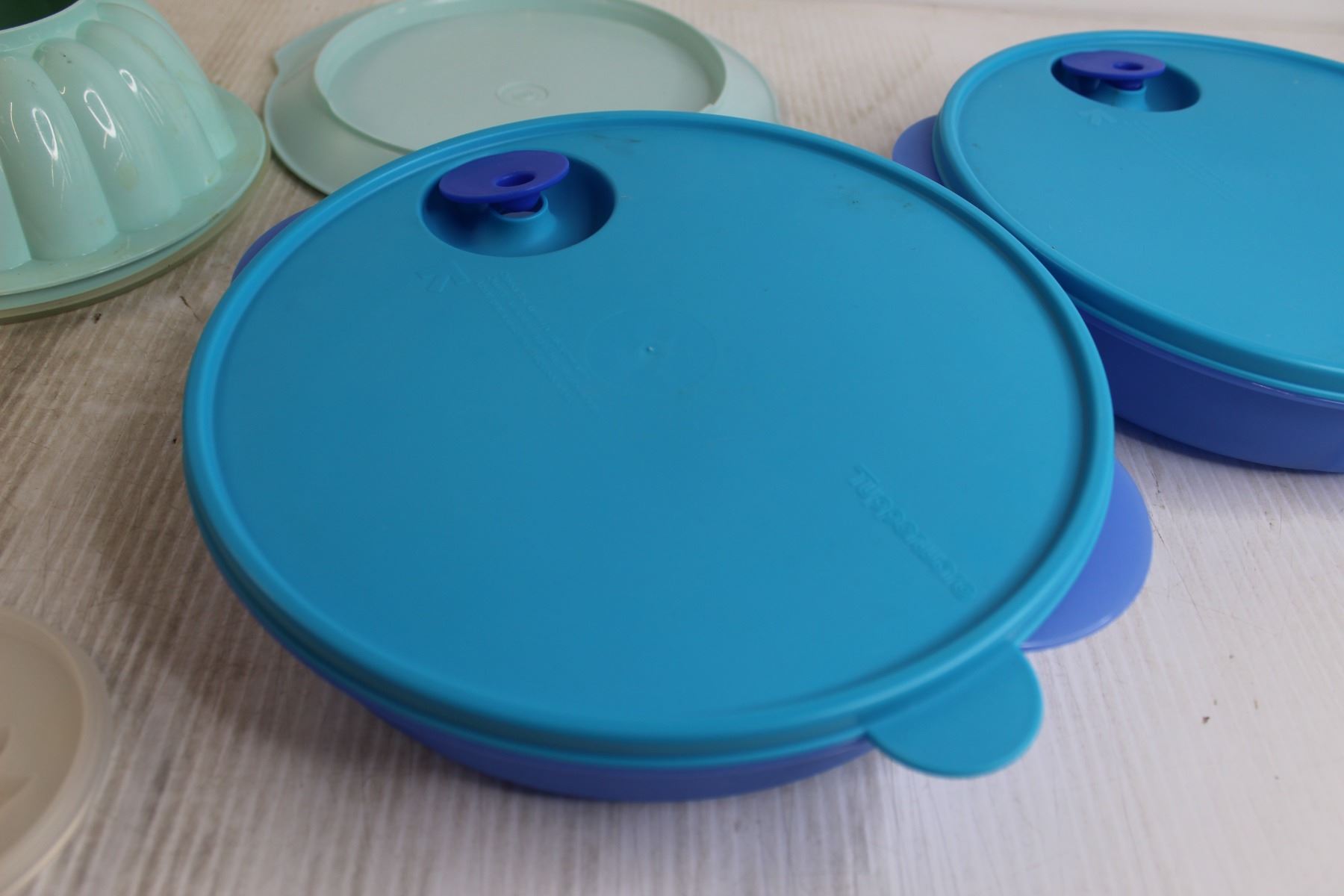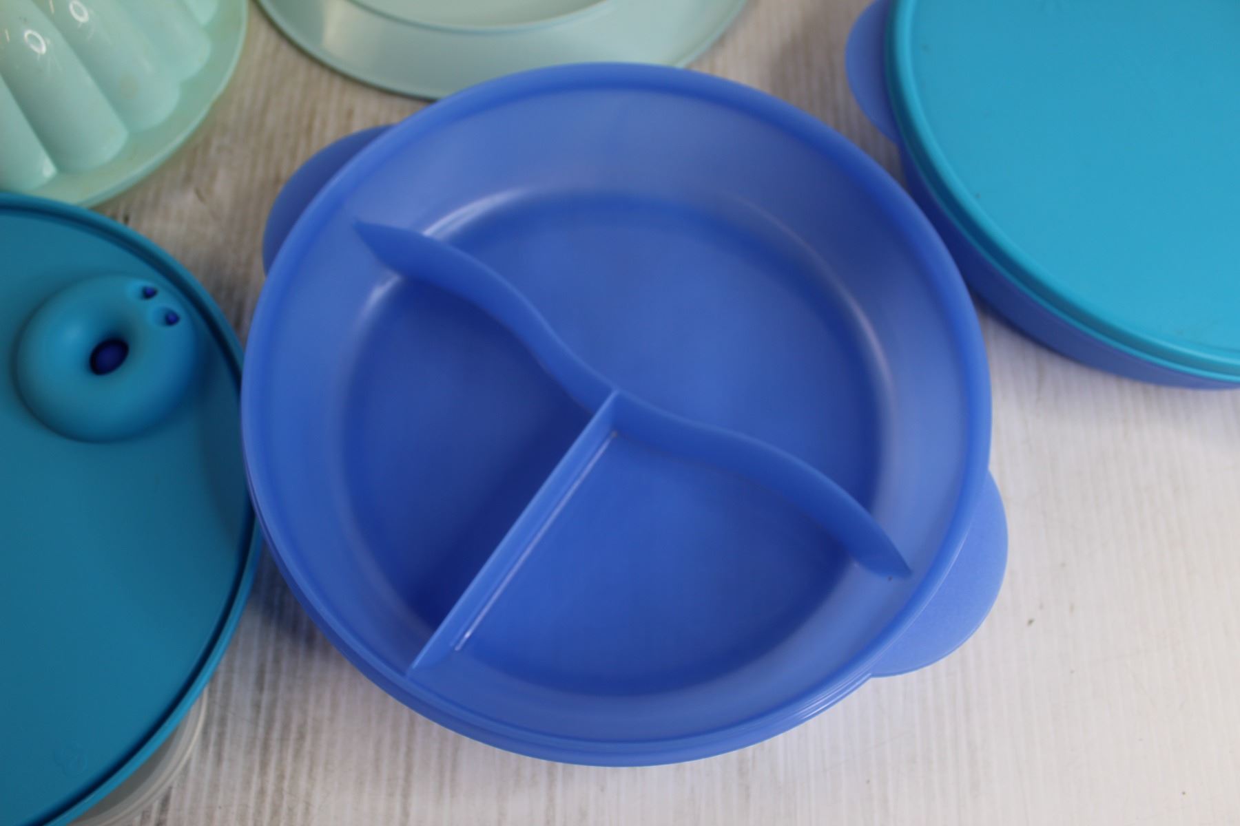(2) Tupperware Divided Food Containers, Tupperware Gelatin Mold with Accessories