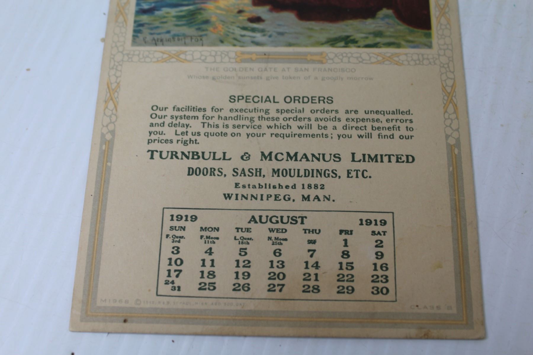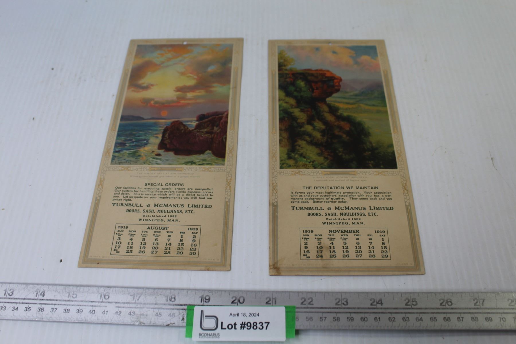 (2) Turnbull & McManus Advertising Calendars - August & November 1919