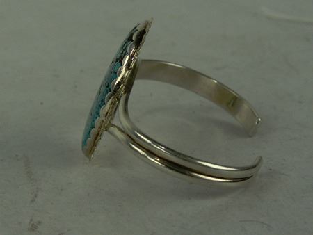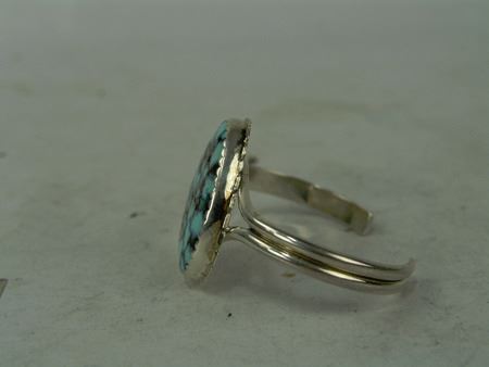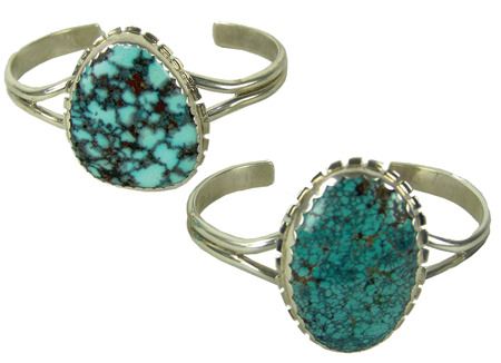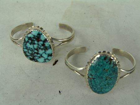 Late 1900s, Pair of beautiful two-band silver bracelets, each adorned with exquisite dark matrix stones, set in unique picket bezels. Excellent condition. 5-3/8" x 1" x 1-1/2"