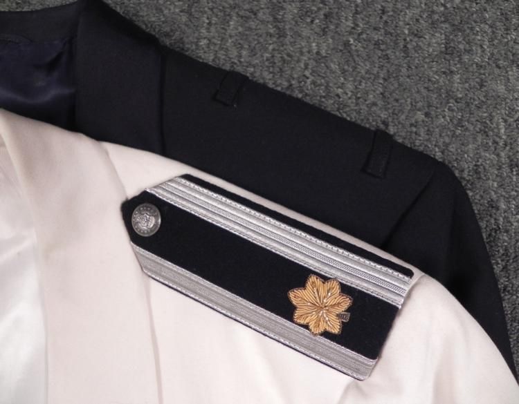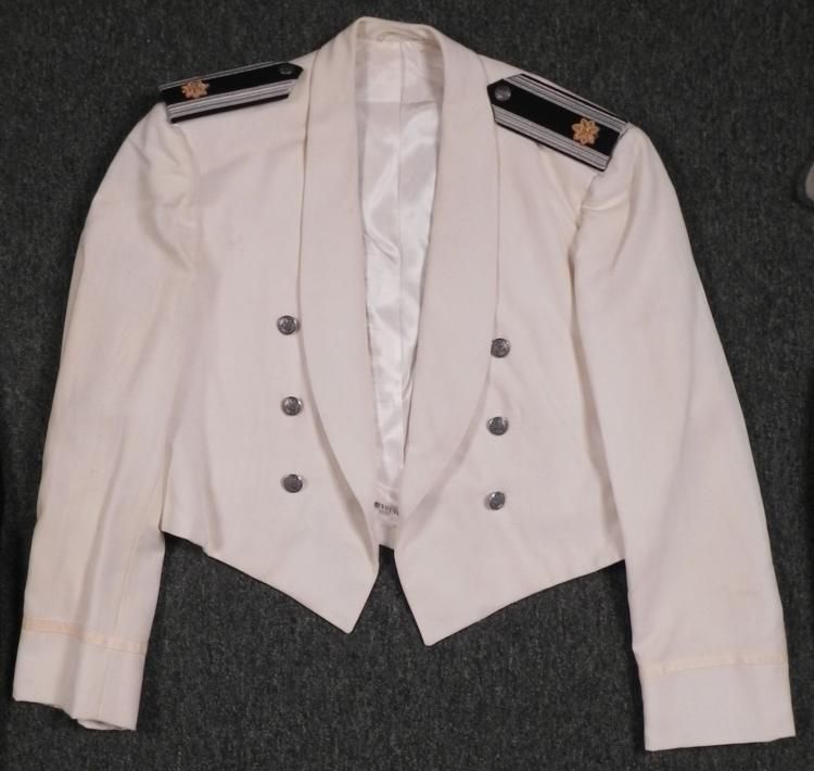 TWO U.S. AIR FORCE MAJOR VINTAGE DRESS-MESS UNIFORMS-TUXEDO WHITE & BLACK W/PANTS-INSIGNIAOUTSTANDING U.S. AIR FORCE MAJOR'S FORMAL DRESS UNIFORMS. ONE IS TUXEDO WHITE WITH SHALL COLLAR MAJOR'S DRESS SHOULDER BOARDS WITH SHORT CUT-BLACK TUXEDO STYLE--