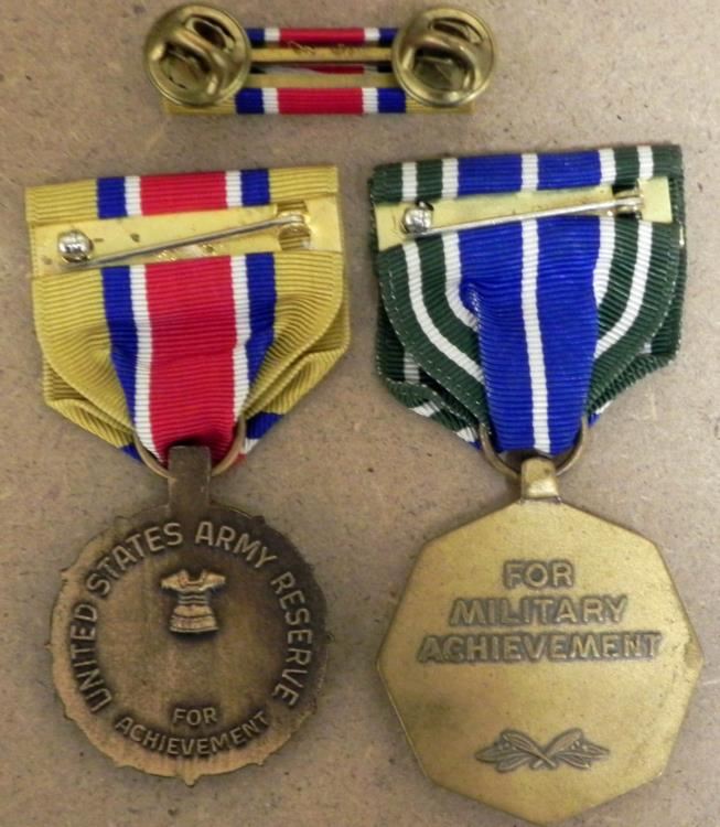 OFFERED HERE ARE 2) U.S. ARMY MILITARY MEDALS W/RIBBON AND RIBBON BAR. (1) FOR MILITARY ACHIEVEMENT-WITH 1775 AND MILITARY SYMBOLS ON FRONT (2) US ARMY RESERVE MEDAL-FOR ACHIEVEMENT WITH MATCHING RIBBON BAR.