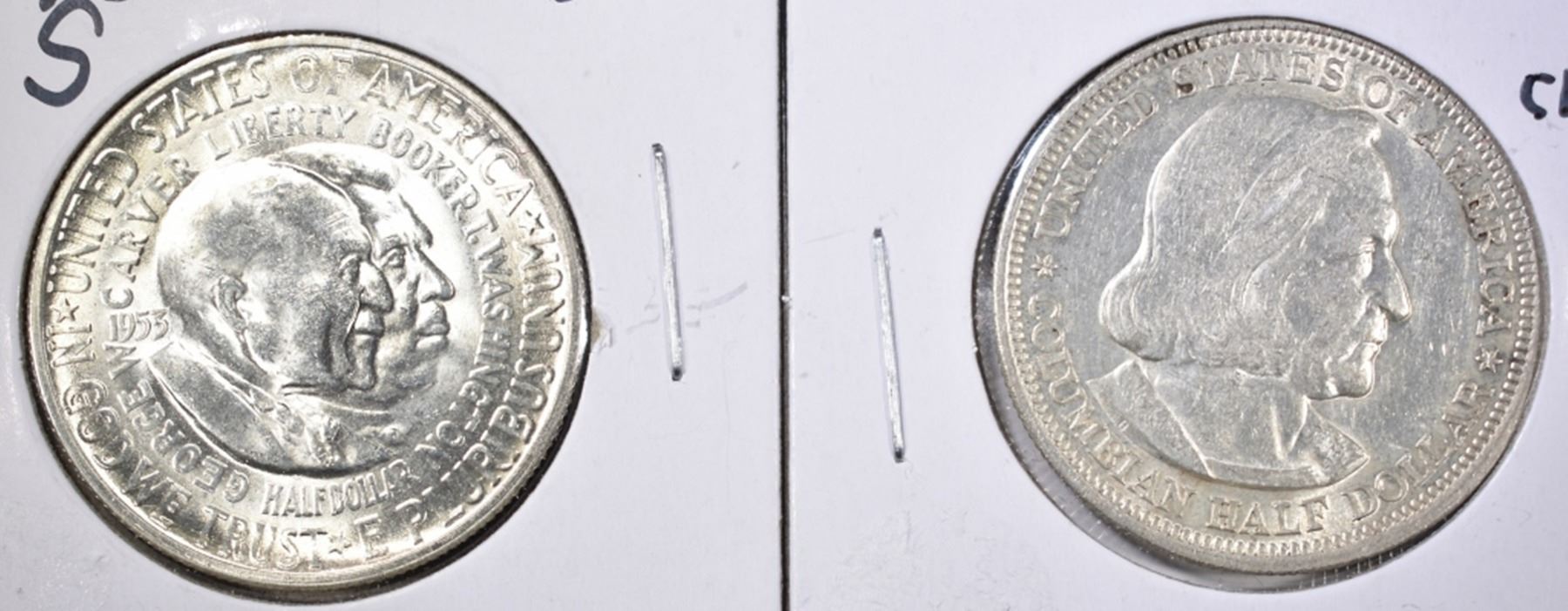 1893 COLUMBIAN EXPO, CH AU & 1953-S WASH-CARVER BU ESTIMATE $70 - $80.