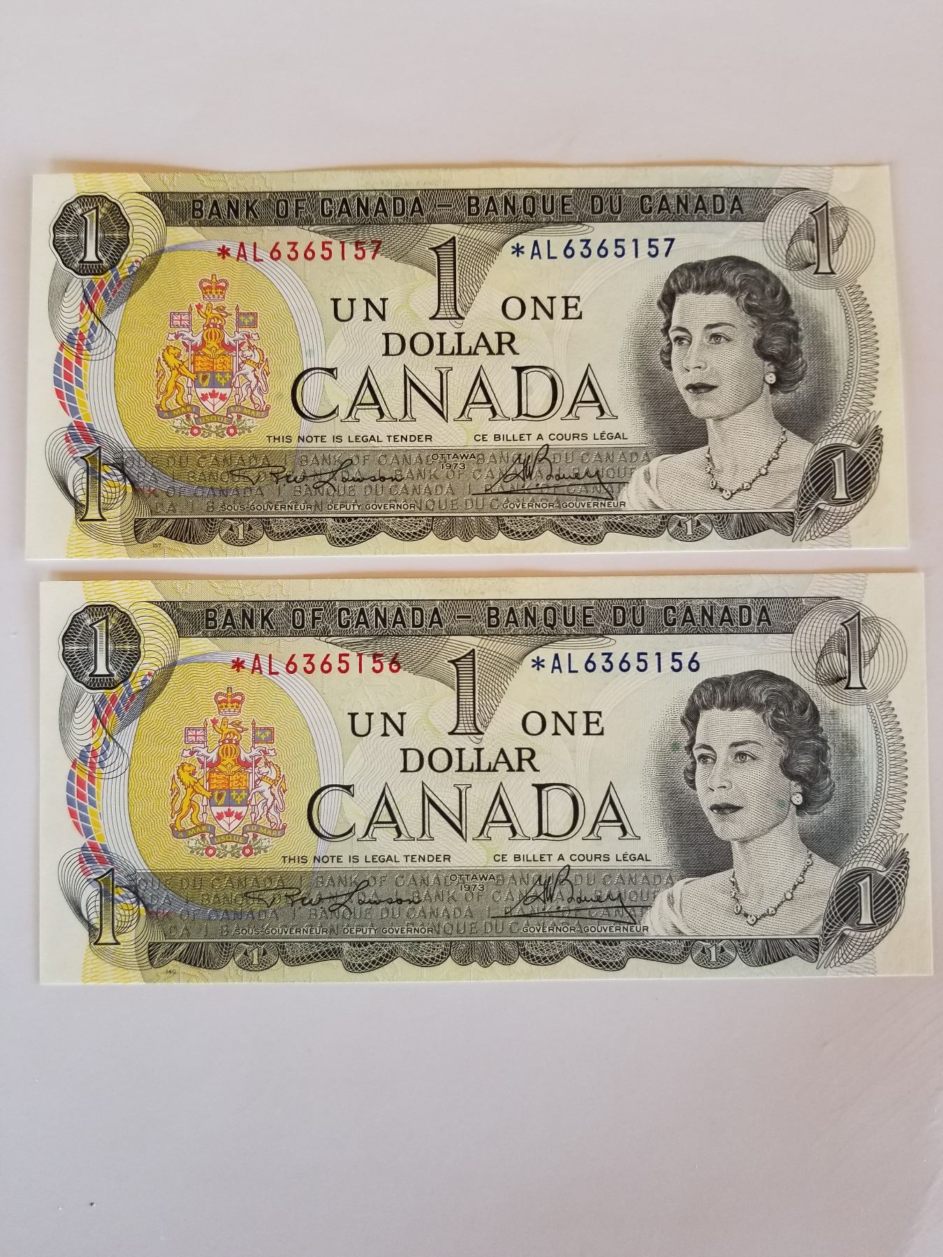 2-UNC 1973 Replacement One Dollar Bills CSN