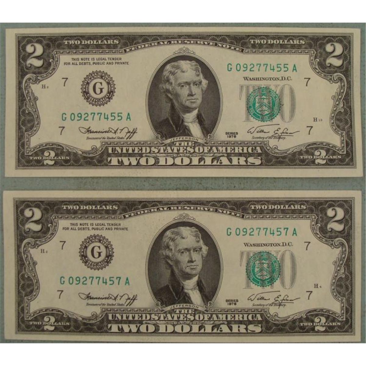 (2) 1976 $2 notes * From the same seriesMint mark:G (Chicago)Condition: Uncirculated
