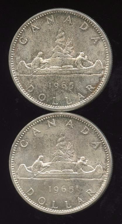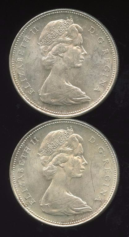 2 UNC Canada 1965 80% Silver Dollars, ASW 1.200 oz