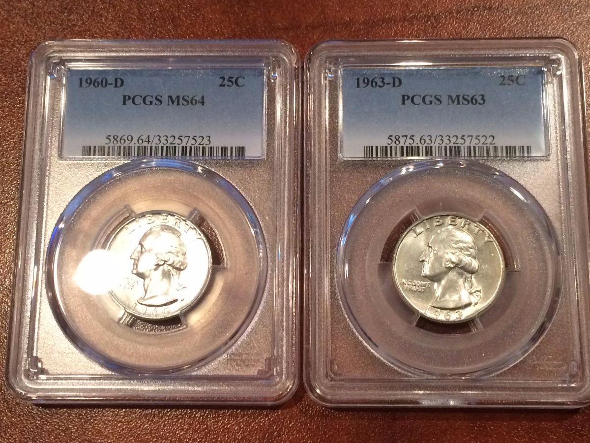 (2) US 25Cent PCGS 1963-D MS63, 1960-D MS64