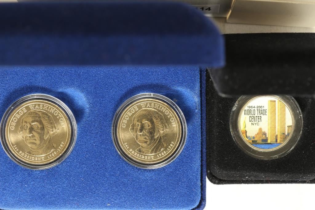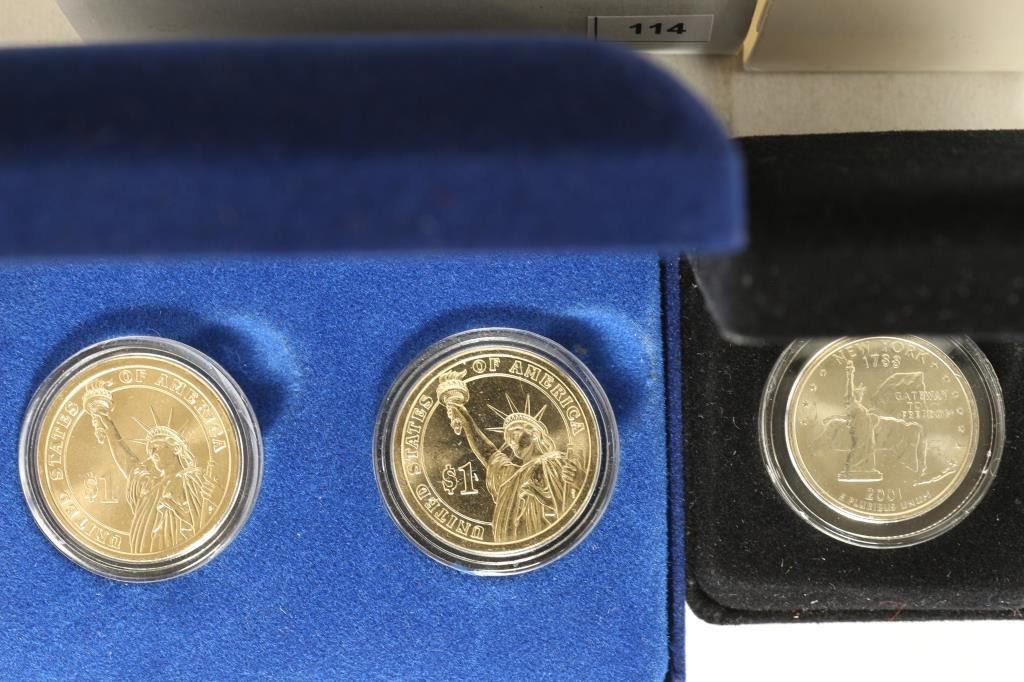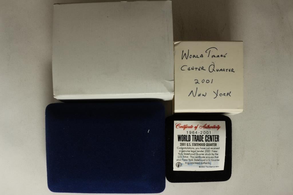 DOLLARS BRILLIANT UNC AND #2-2001 COLORIZED QUARTER WORLD TRADE CENTER