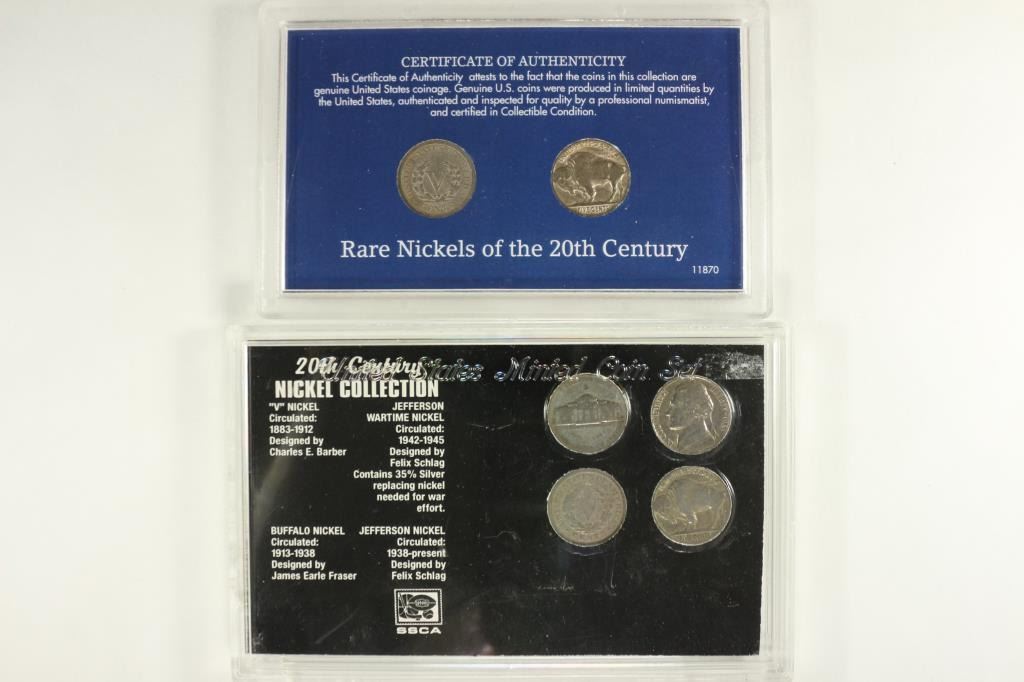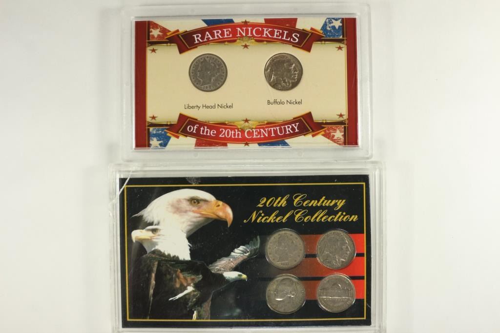 LIBERTY "V" NICKEL AND BUFFALO NICKEL AND THE SECOND SET IS 20TH CENTURY NICKEL COLLECTION CONTAINS: LIBERTY "V" NICKEL, BUFFALO NICKEL, 35% SILVER JEFFERSON WAR NICKEL AND JEFFERSON NICKEL