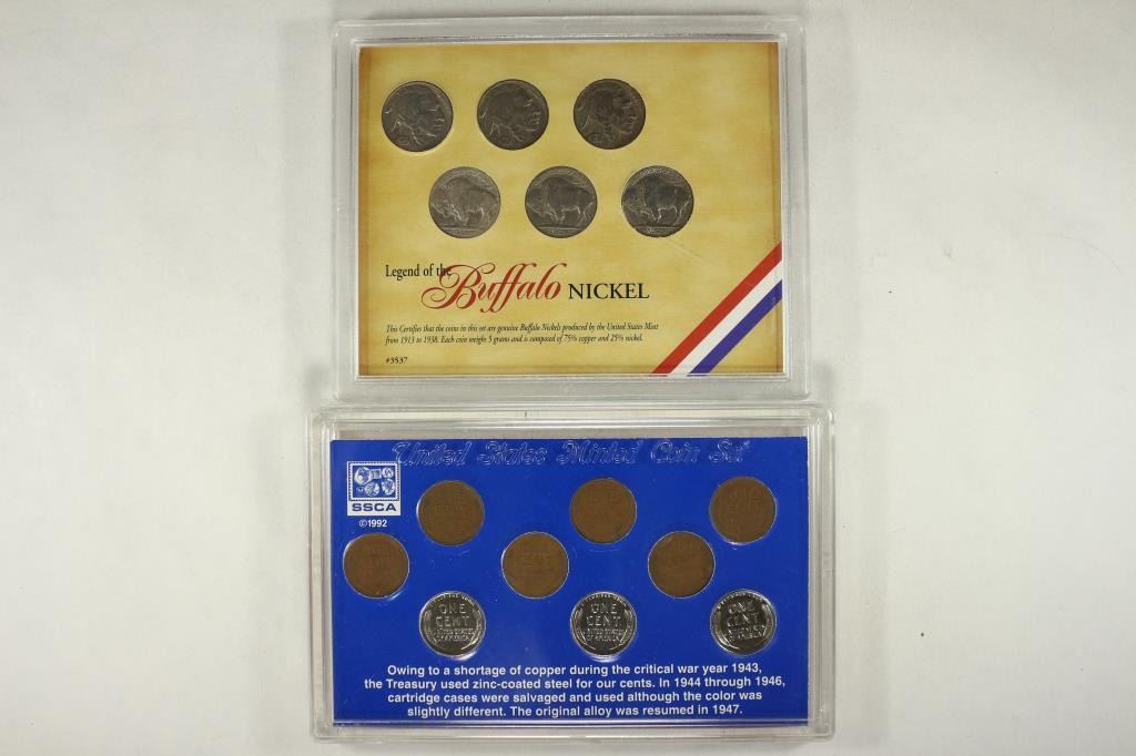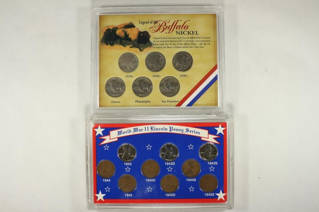 CONTAINS: 6 BUFFALO NICKELS AND WWII LINCOLN PENNY SERIES CONTAINS: 9 LINCOLN CENTS