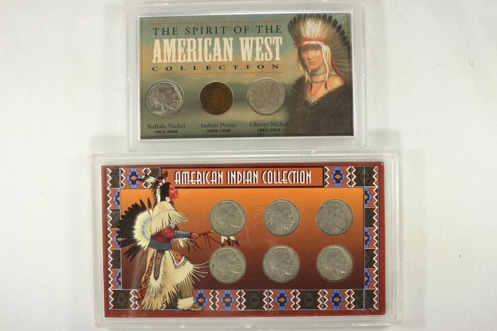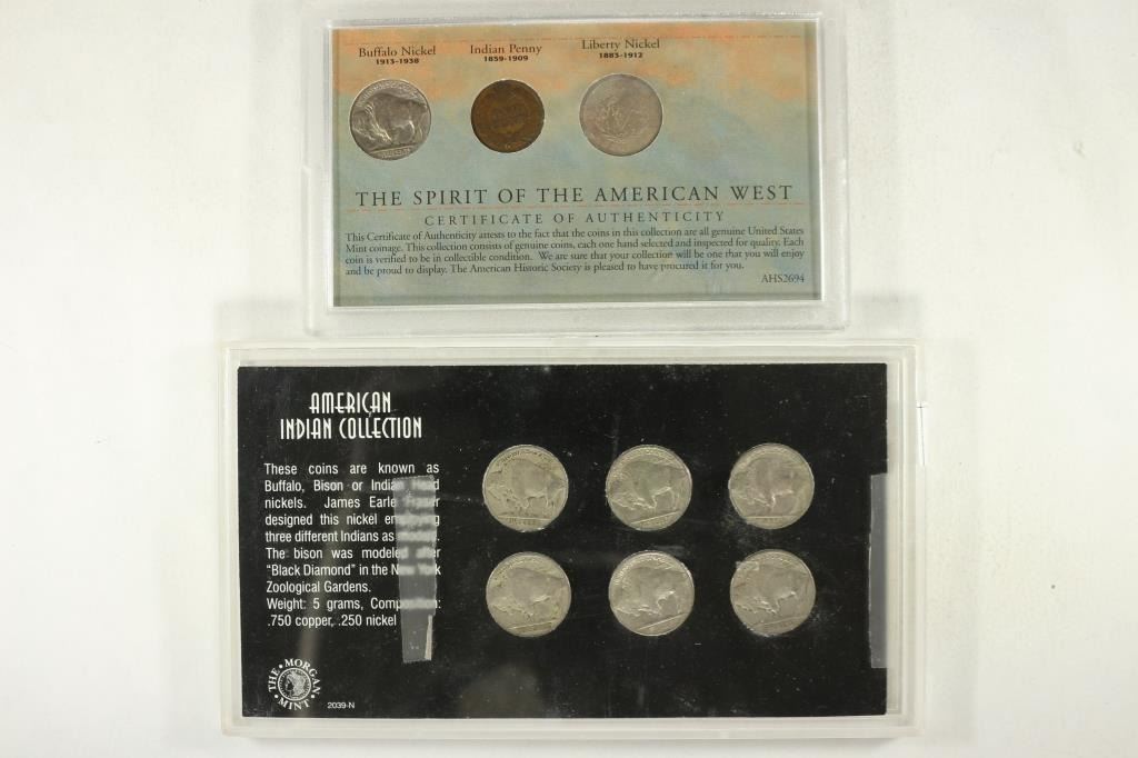 INDIAN HEAD CENT, LIBERTY "V" NICKEL AND BUFFALO NICKEL AND THE OTHER IS THE AMERICAN INDIAN COLLECTION CONTAINS: 6 BUFFALO NICKELS