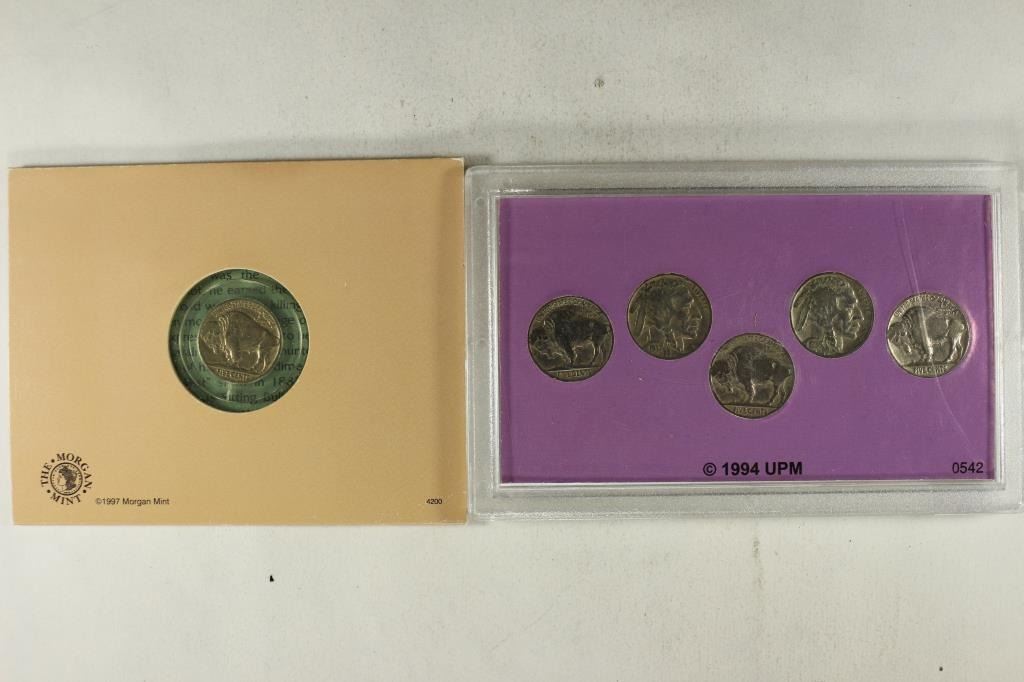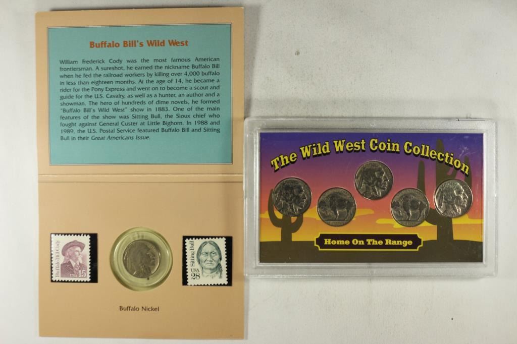 (HOME ON THE RANGE) WITH 5-BUFFALO NICKELS AND BUFFALO BILLS WILD WEST WITH BUFFALO NICKEL AND 2-UNUSED US POSTAGE STAMPS