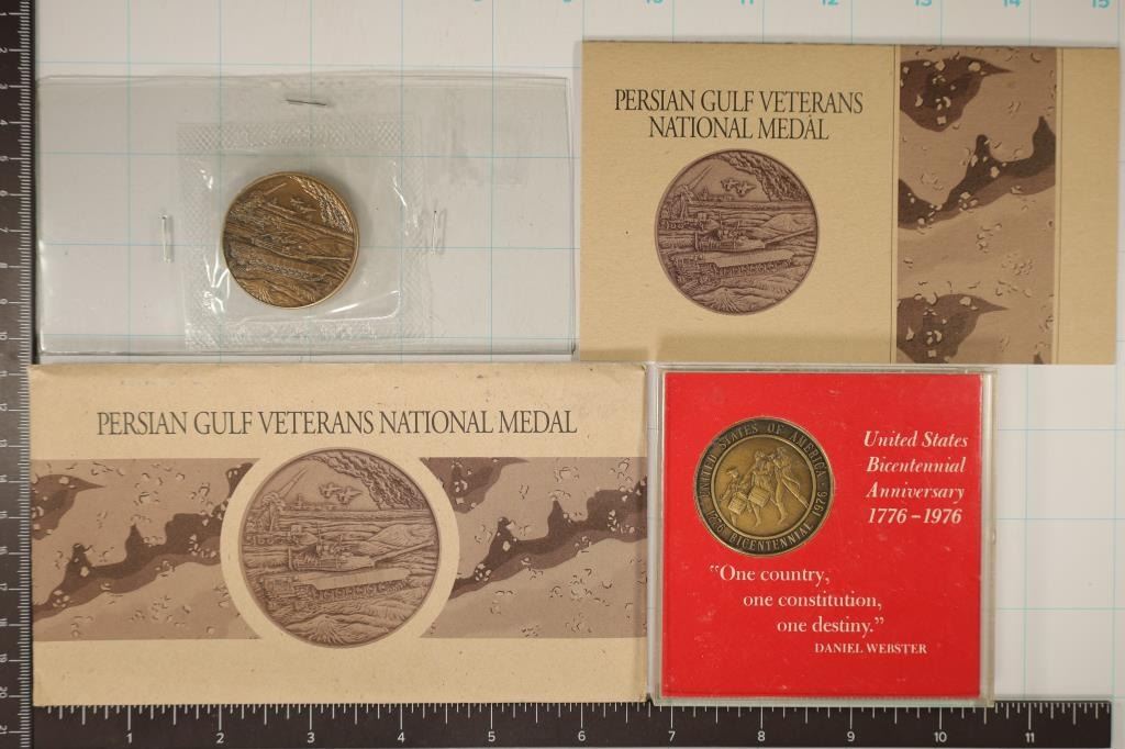 IN HARD PLASTIC CASE AND PERSIUN GULF VETERANS NATIONAL MEDAL IN ORIGINAL MINT ENVELOPE.
