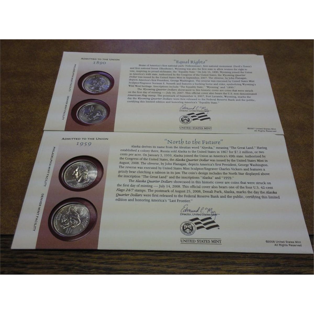 2 US MINT 50 STATE QUARTER FDC'S ALASKA & WYOMING