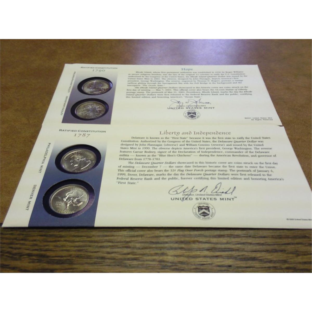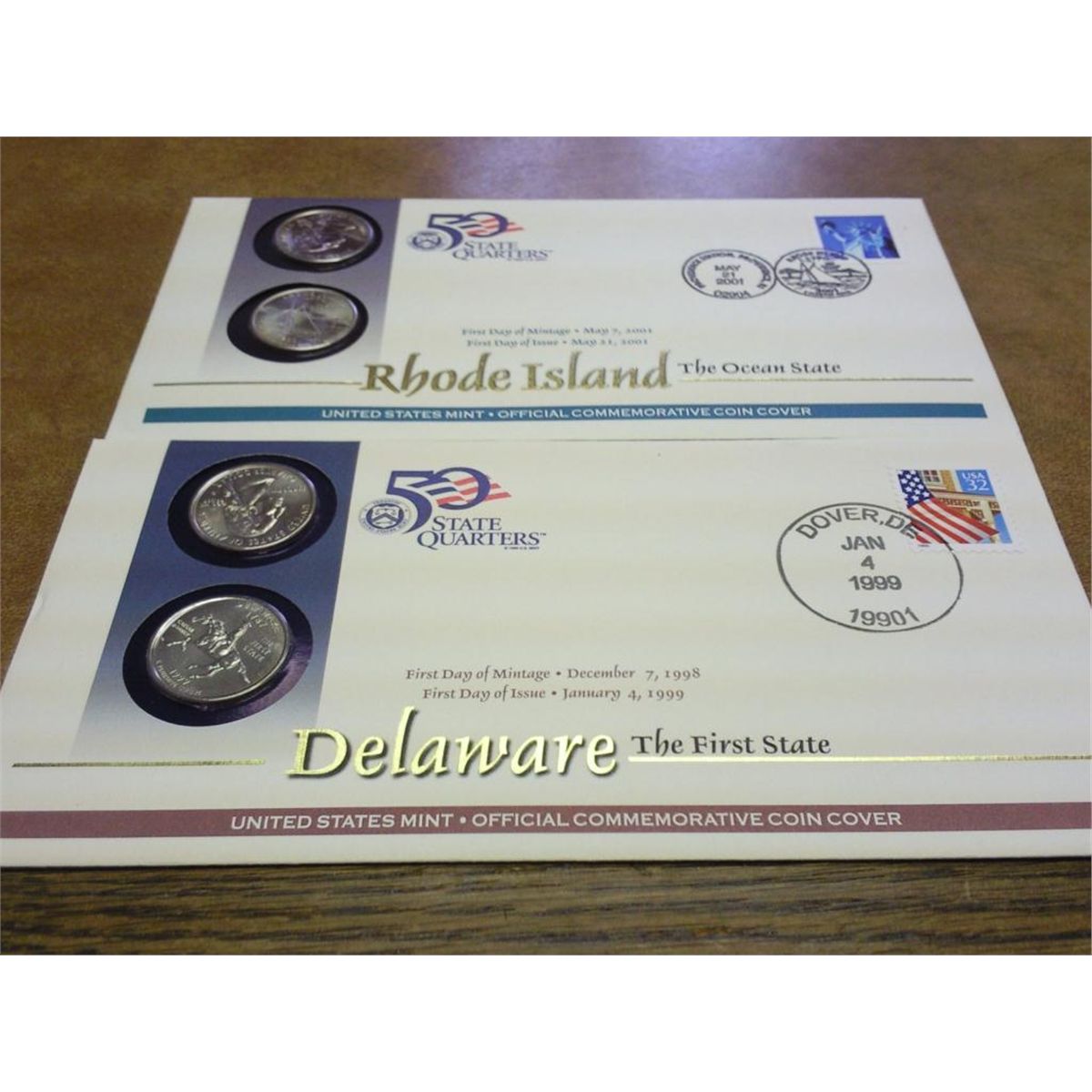 2 US MINT 50 STATE QUARTER FDC'S (DE, RI)