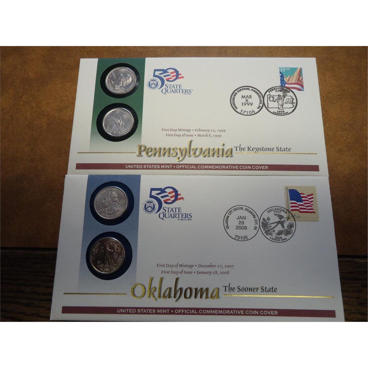 2 US MINT 50 STATE QUARTER FDC'S (OK, PA)