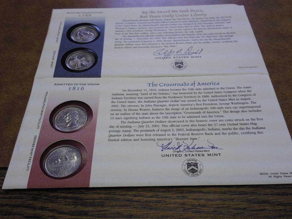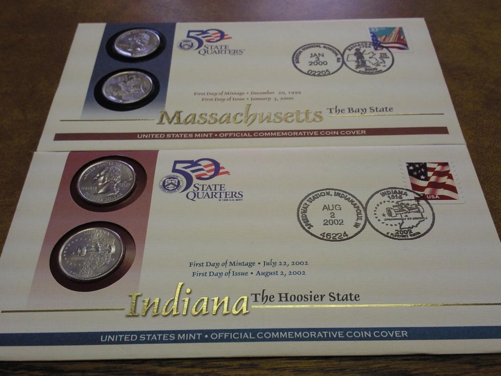 2 US MINT 50 STATE QUARTERS FDC'S (IN & MA)