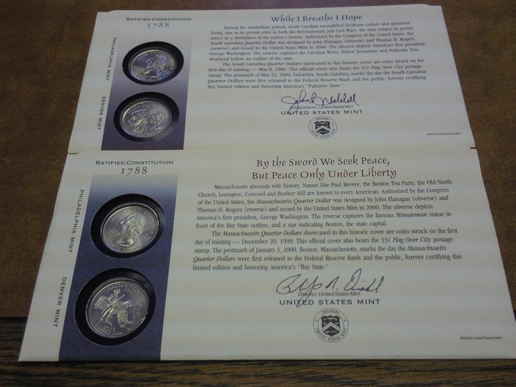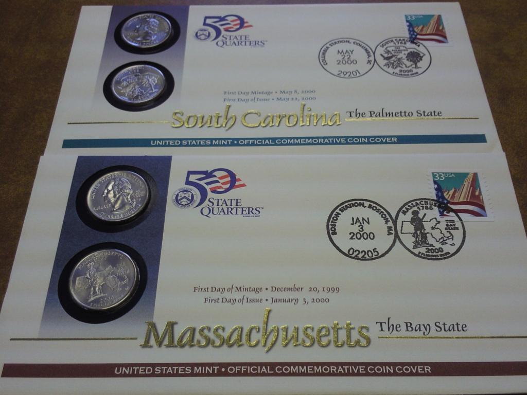 2 US MINT STATE QUARTER FDC'S (MA & SC)