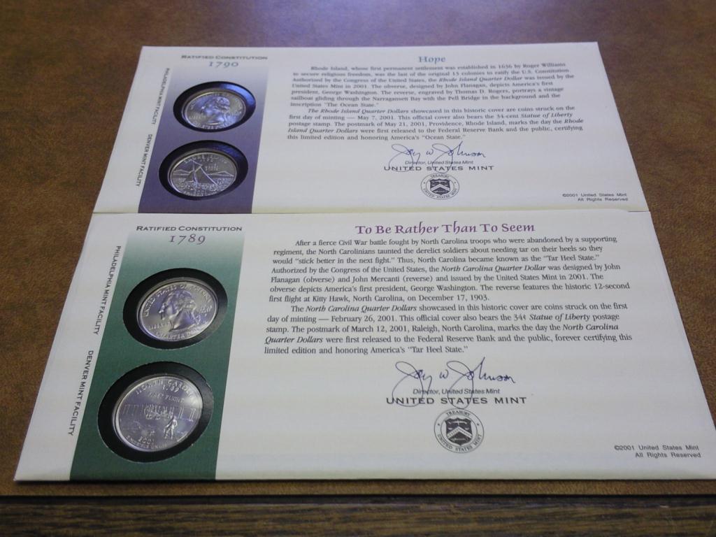 2 US MINT STATE QUARTER FDC'S (NC & RI)