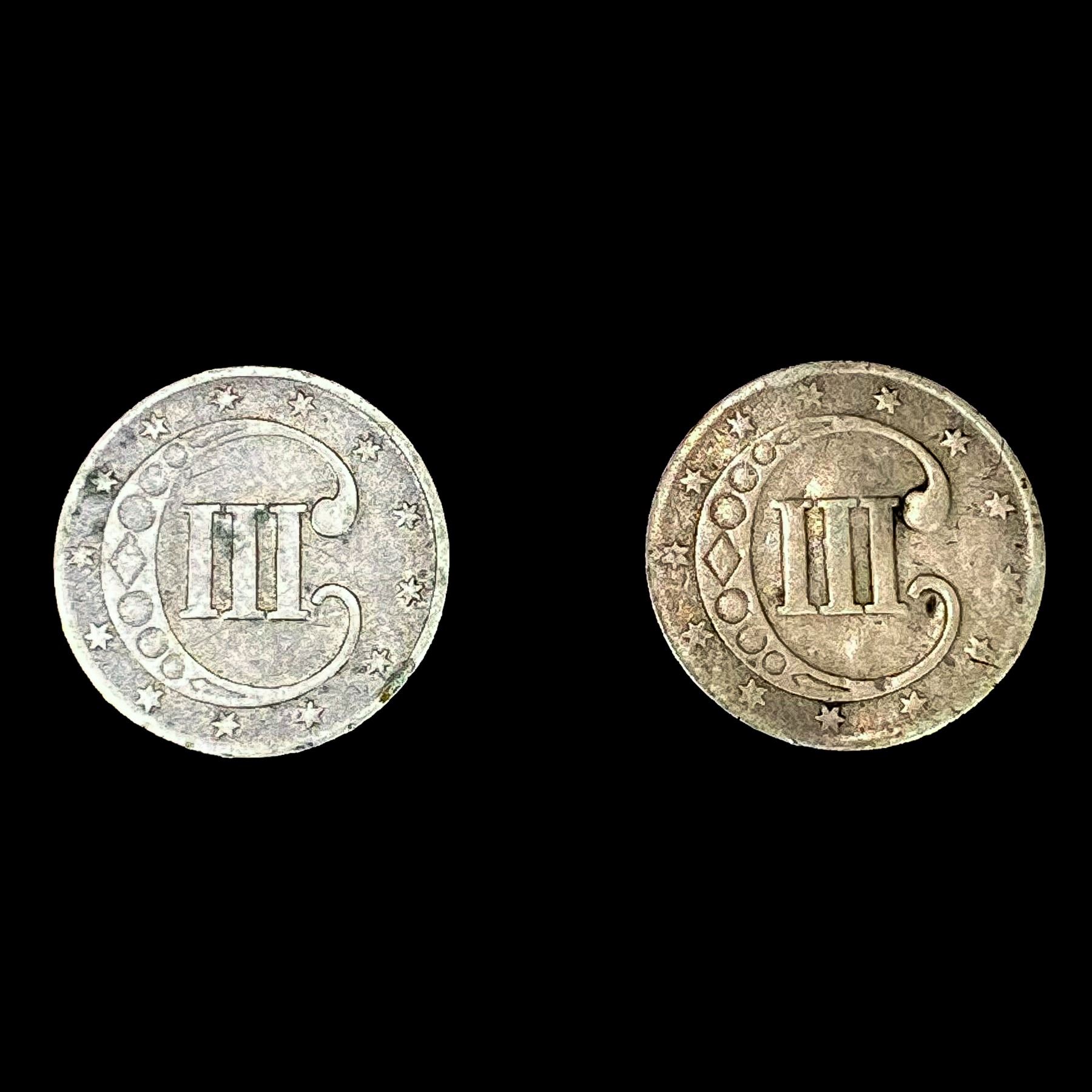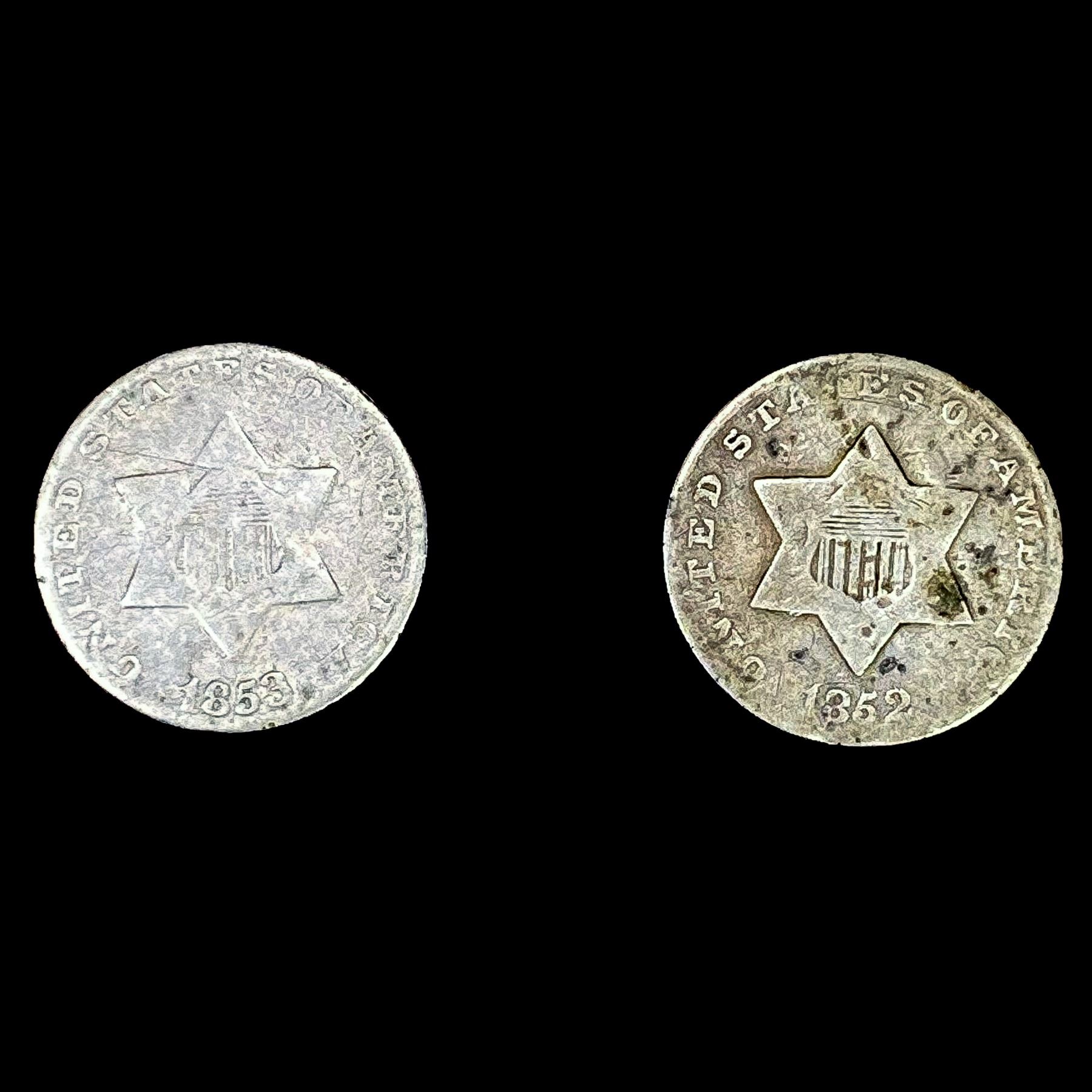 [2] US SILV Three Cents [1852, 1853] NICELY CIRCUL