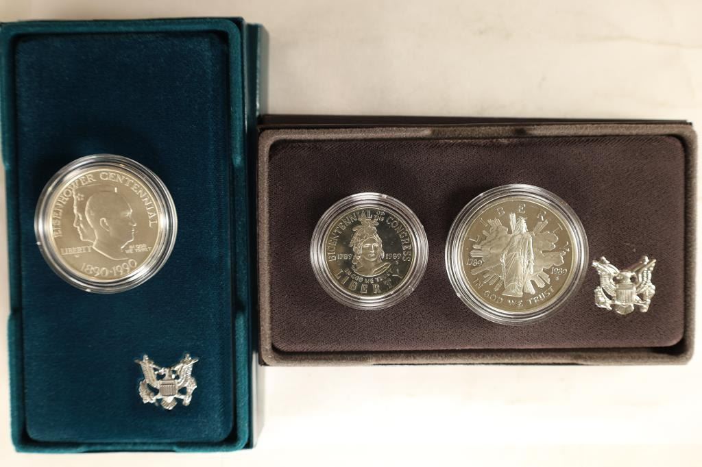 SILVER EISENHOWER DOLLAR AND 1989-S US CONGRESSIONAL COINS-PROOF SILVER DOLLAR AND CLAD HALF DOLLAR. BOTH IN ORIGINAL US MINT PACKAGING AND CERTIFICATES