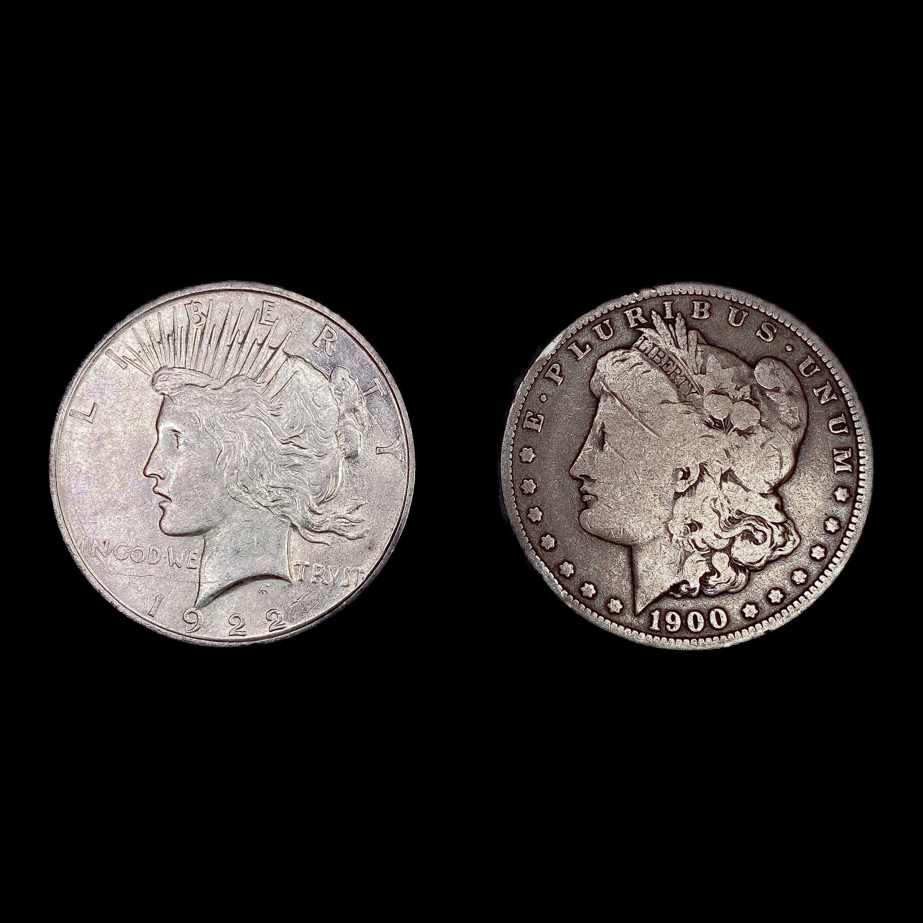 (2) US Silver Dollars (1900-O, 1922-D) NICELY CIRC